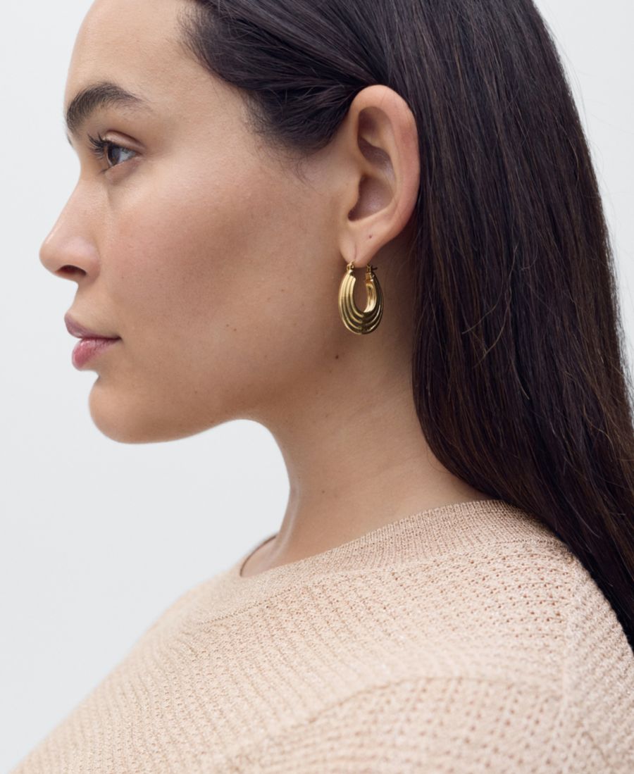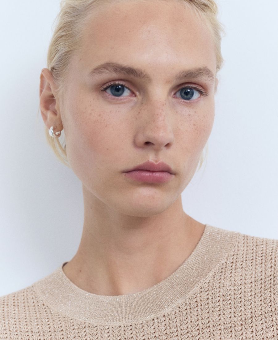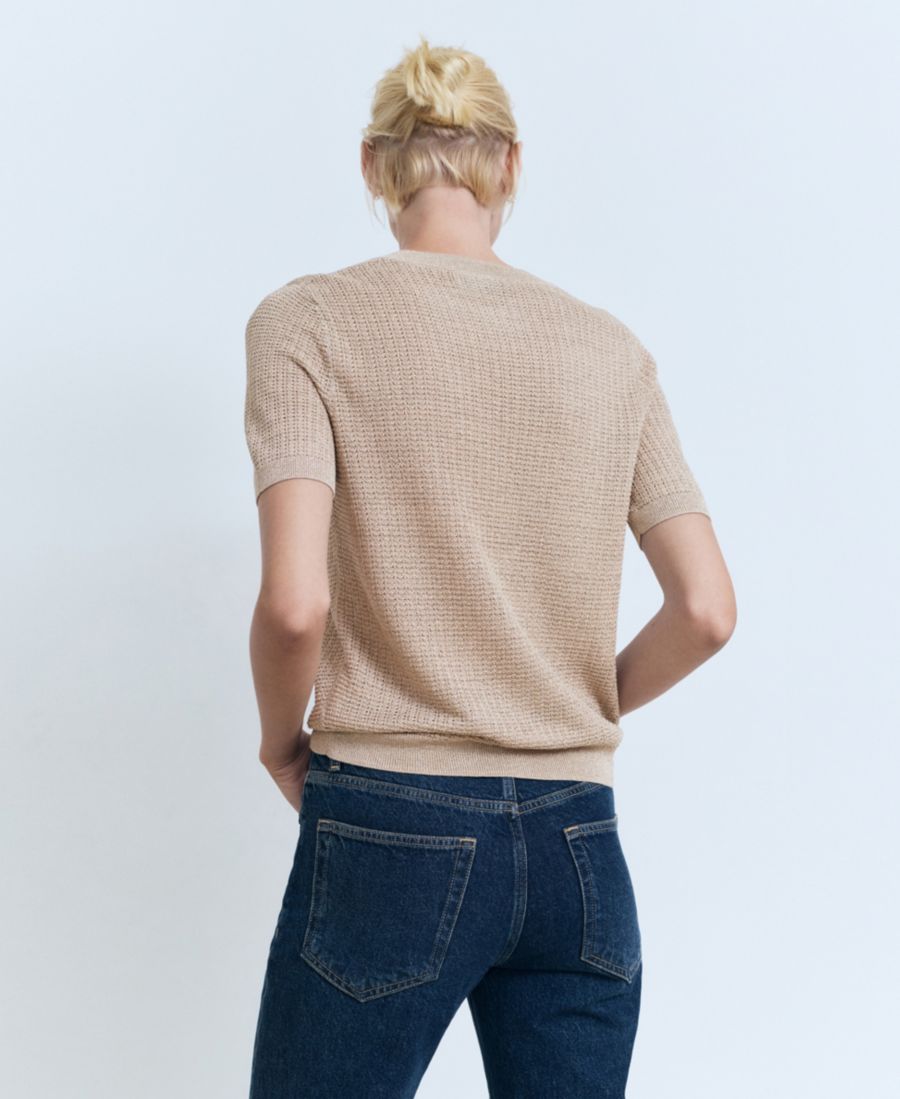 Сдержанный блеск подчеркивает свитер с короткими рукавами из люрекса от Mango.