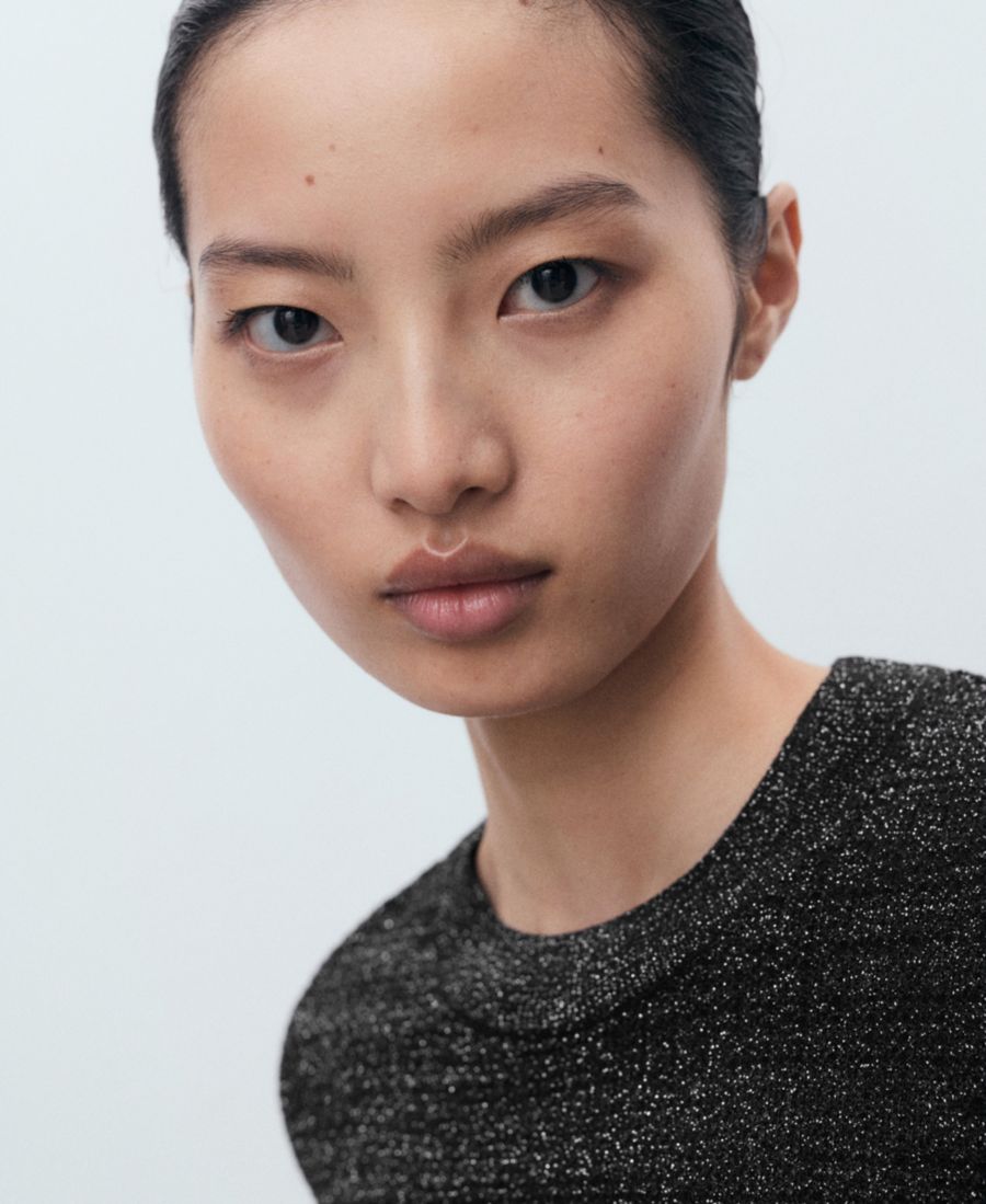 Сдержанный блеск подчеркивает свитер с короткими рукавами из люрекса от Mango.