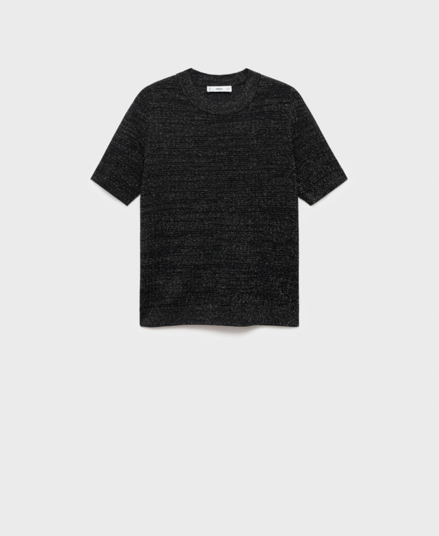 Женский свитер с короткими рукавами и люрексом MANGO, Black