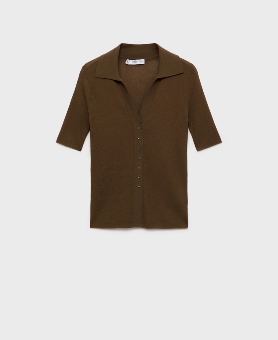 Женский ребристый свитер с воротником-поло MANGO, Chocolate