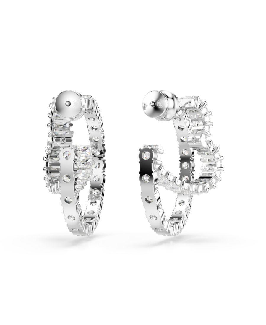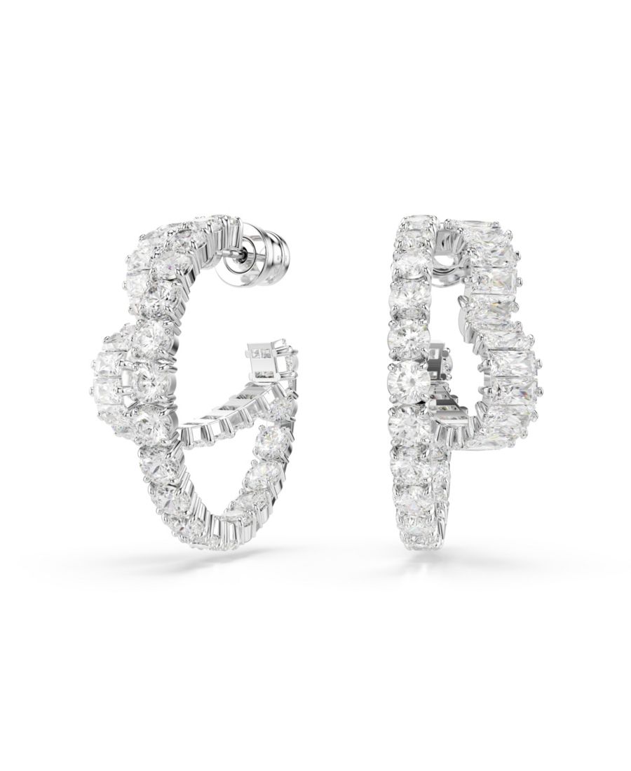 Серьги-кольца Matrix Mixed Cuts в форме сердца, белые, с родиевым покрытием Swarovski, Clear, Silver