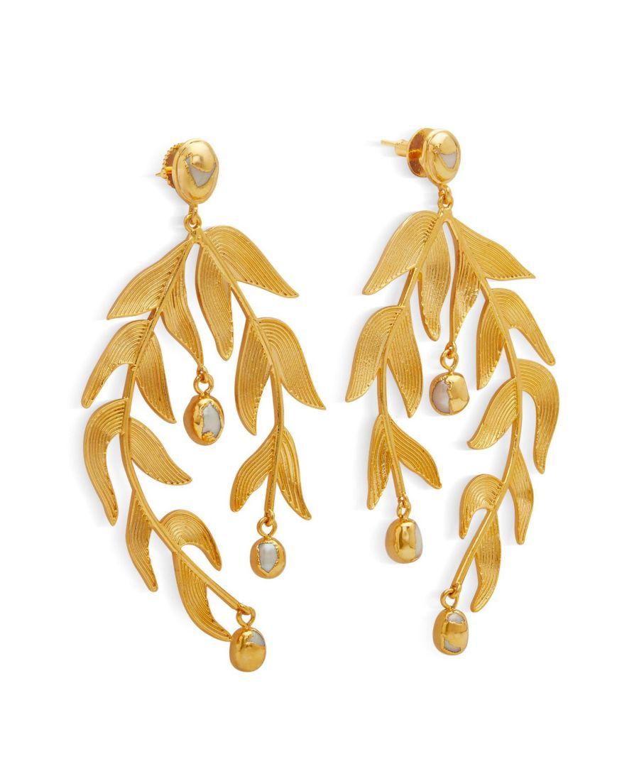Серьги-люстры Sooki отражают сущность женской энергии и изящно ниспадают по уху, выполненные из фактурной латуни с покрытием из 22-каратного золота. Разбросанные жемчужины в стиле барокко добавляют естественного блеска, а смелая, вытянутая форма создает эффектный, но в то же время изысканный образ. Идеально подходящие для вечерних выходов или особых случаев, эти серьги привлекают внимание своим современным, скульптурным, легким дизайном и сияющими деталями.