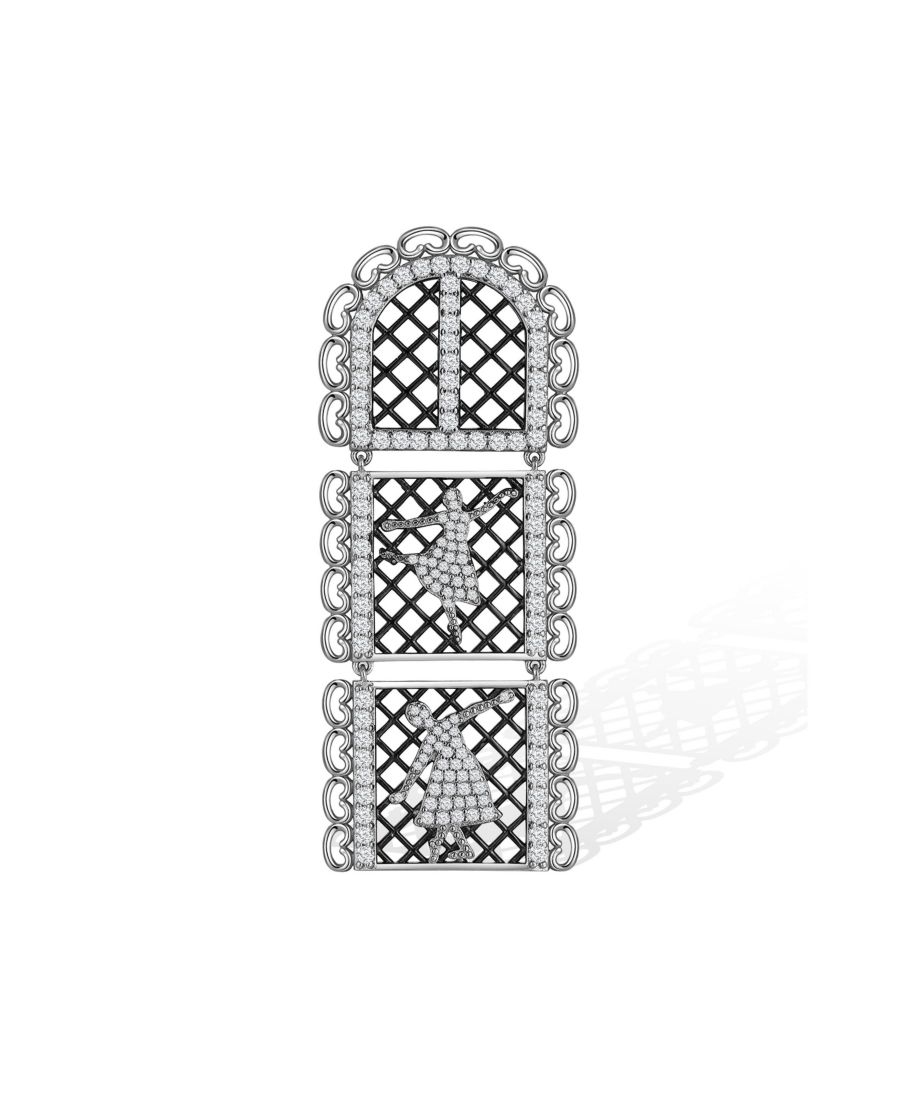 Вдохновлено балетом эпохи Возрождения, передает сочетание силы и грации танцовщицы. Символ расширения прав и возможностей, призывающий женщин раскрыть свою внутреннюю элегантность и стойкость. Дизайн включает в себя оправы в стиле Возрождения, переосмысленные в современной эстетике. Застежка-защелка и двухцветное покрытие из латуни 2,36 дюйма Двухцветное покрытие из латуни (белое золото и черный цвет) с белым цирконием Импортный товар