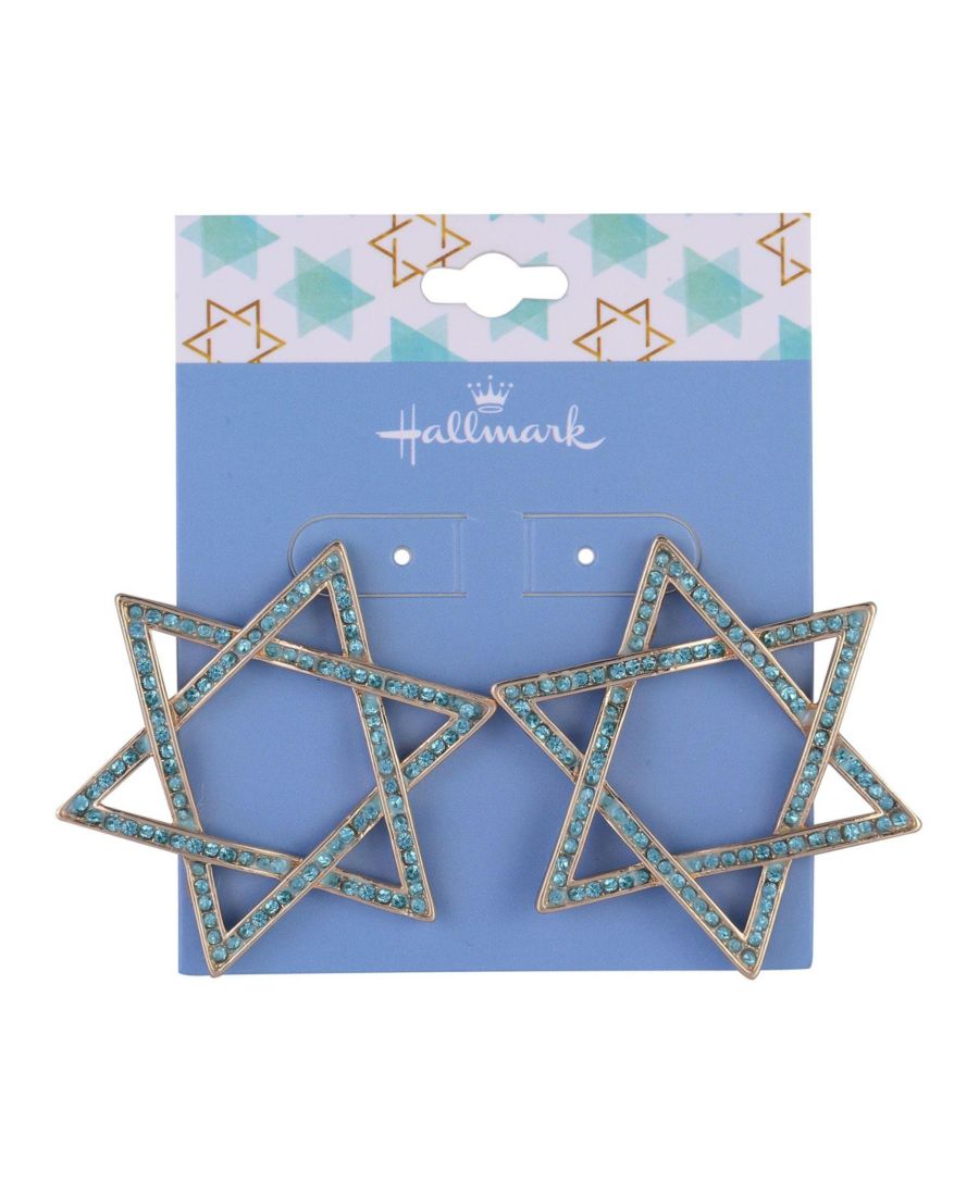 Серьги-кольца Звезда Давида с голубым камнем Hallmark, No Color 3 936₽