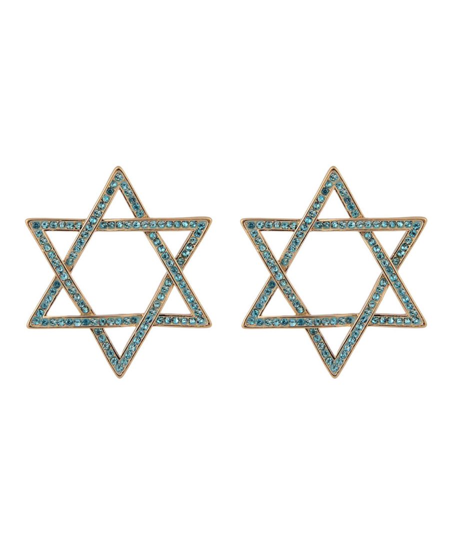 Серьги-кольца Звезда Давида с голубым камнем Hallmark, No Color