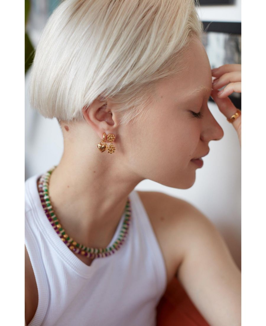 Подарите своим серьгам-кольцам немного любви с помощью этих милых сережек-колец. Эта пара с золотым покрытием украшена подвесками в виде сердечек, изготовленными вручную в нашей мастерской в Стамбуле. Носите их как в паре, так и в сочетании с другими серьгами, эти серьги-кольца с сердечками станут вашими любимыми на каждый день.