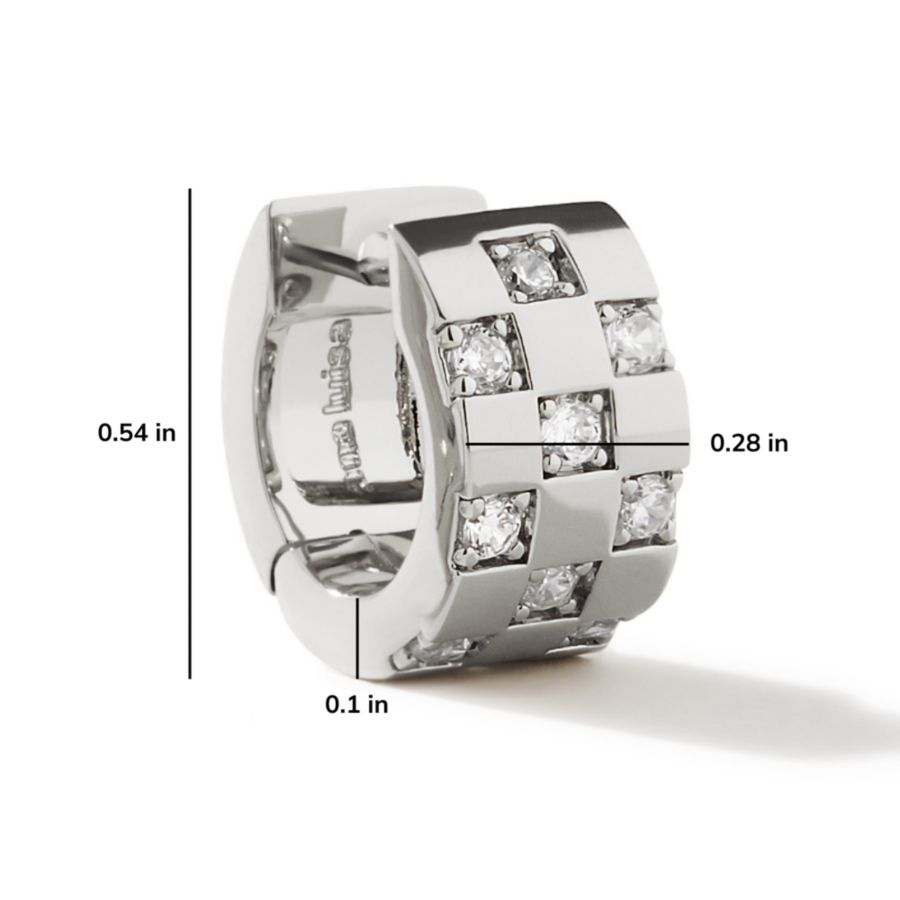 Эти серебряные серьги-кольца покрыты родием и украшены уникальной квадратной инкрустацией с блестящими фианитами, что придает им привлекательный завершающий штрих. Эту блестящую пару можно носить и отдельно, но мы рекомендуем добавить к ним наши серьги-кольца Suzanne для еще более эффектного сочетания.