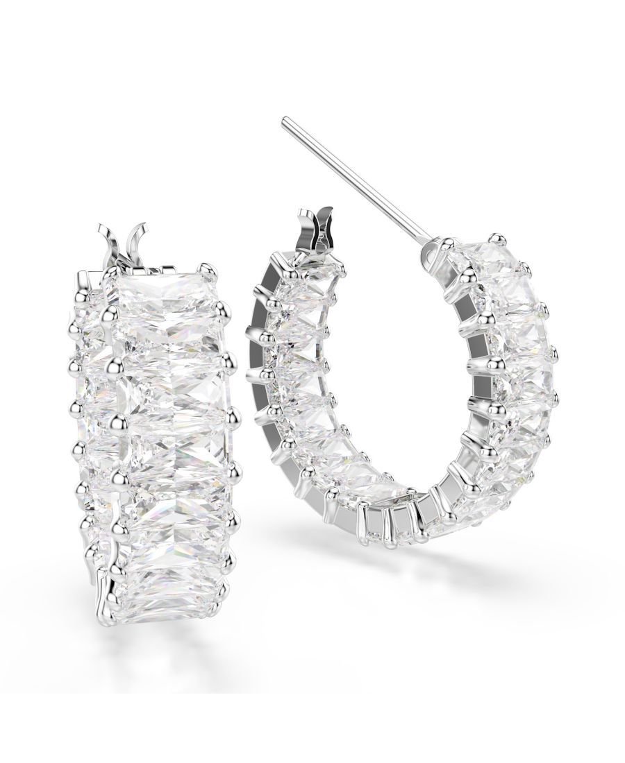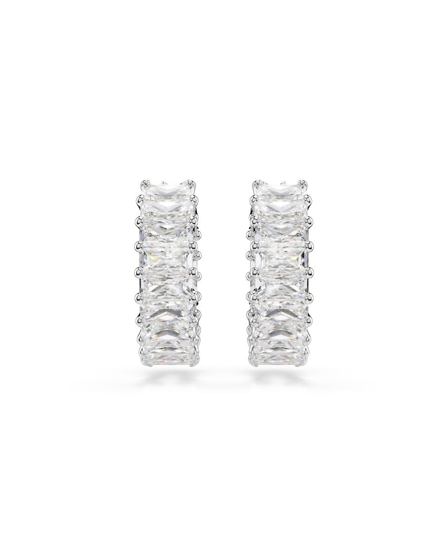 Серьги-кольца Matrix с родиевым покрытием Swarovski, Silver, Clear