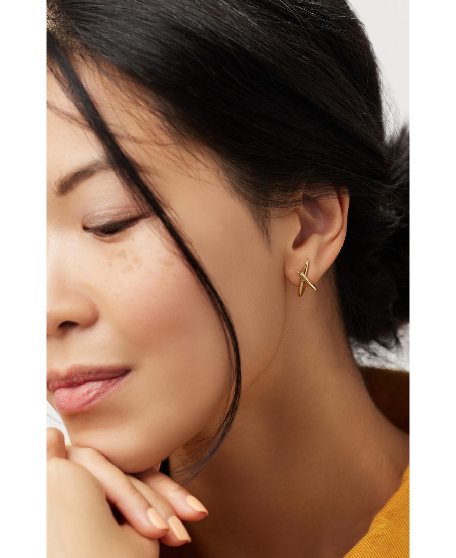 Эти золотые серьги-гвоздики станут изысканным дополнением вашей коллекции. Их перекрещивающийся дизайн добавляет им изюминку, выделяя их среди других. Они прекрасно смотрятся сами по себе, но также великолепно сочетаются с другими украшениями, особенно в паре с нашей серьгой-каффом Flynn.