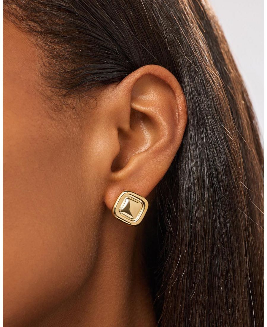 Дополните свой комплект этими простыми серьгами-гвоздиками. Покрытые 14-каратным золотом, эти серьги имеют квадратную форму со скругленными углами, что придает им мягкость.