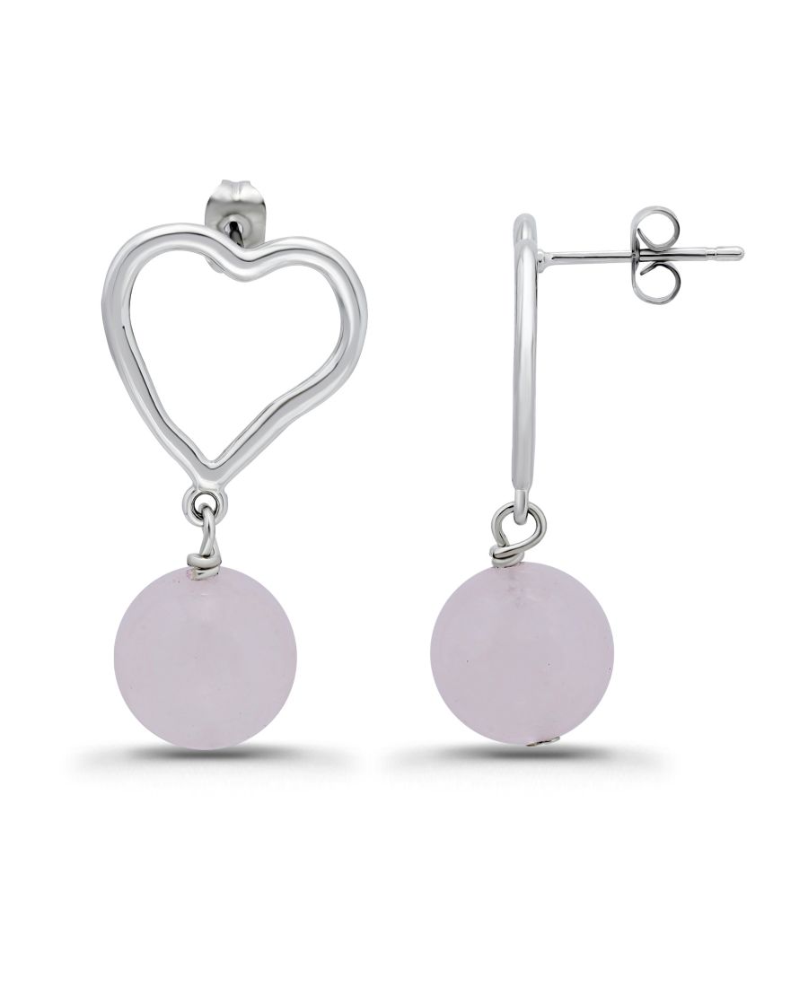 Серебряные серьги-гвоздики в форме открытого сердца Macy's, Silver/Rose Quartz