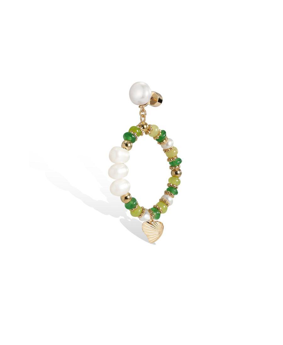 Детали: Прибл. 1,75"x22"; длина подвески 1,25"x22"; кольцо с бусинами, украшенное зелеными камнями, жемчугом в стиле пресноводных камней и золотистыми акцентами