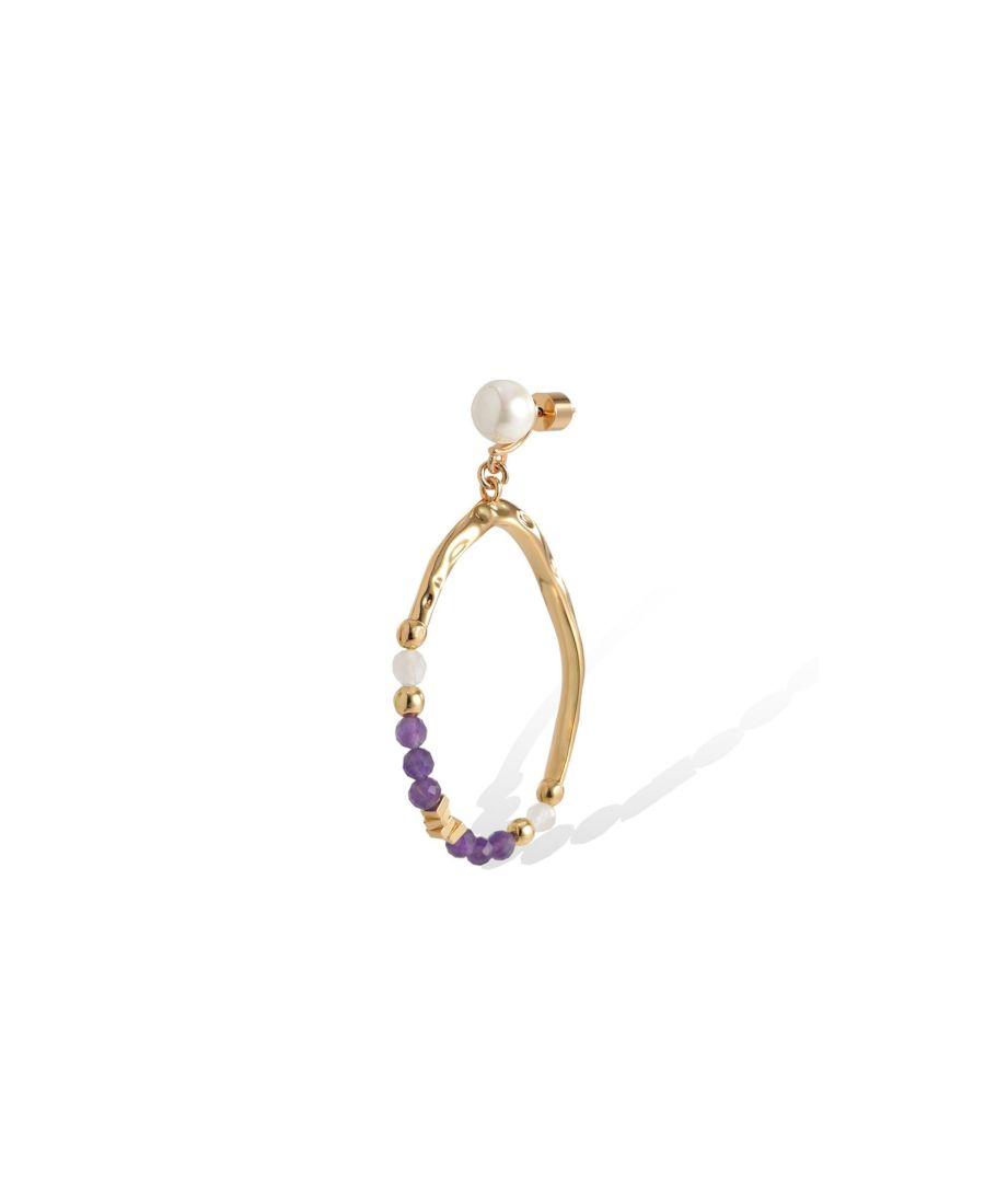 Изящные серьги-подвески, вдохновленные морской романтикой, с деталями из аметиста и жемчуга, создадут очаровательный и эффектный образ.