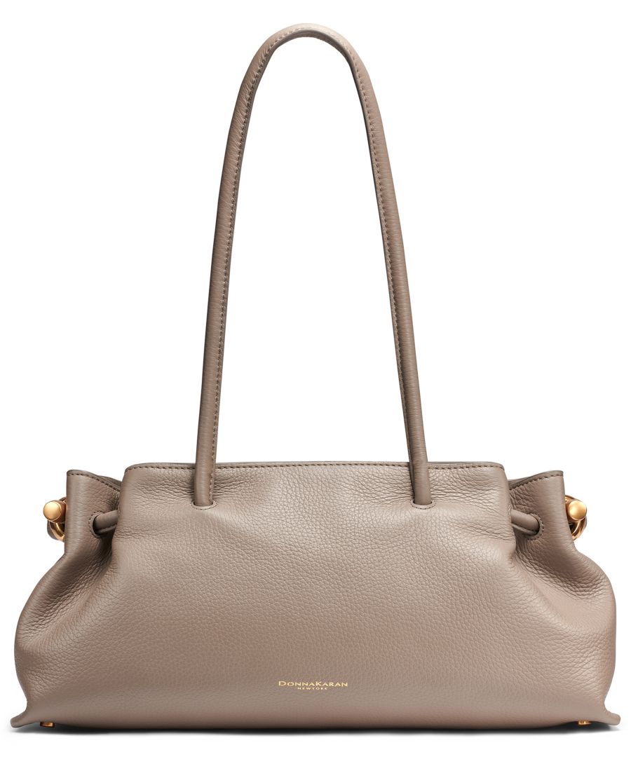 Носите свои вещи в этой сумке-тоут Donna Karan New York с изысканной фурнитурой в виде золотистого узла. Клапан с магнитной застежкой надежно удерживает содержимое внутри структурированной сумки. Внутри есть накладной карман и отделение для кредитных карт.
