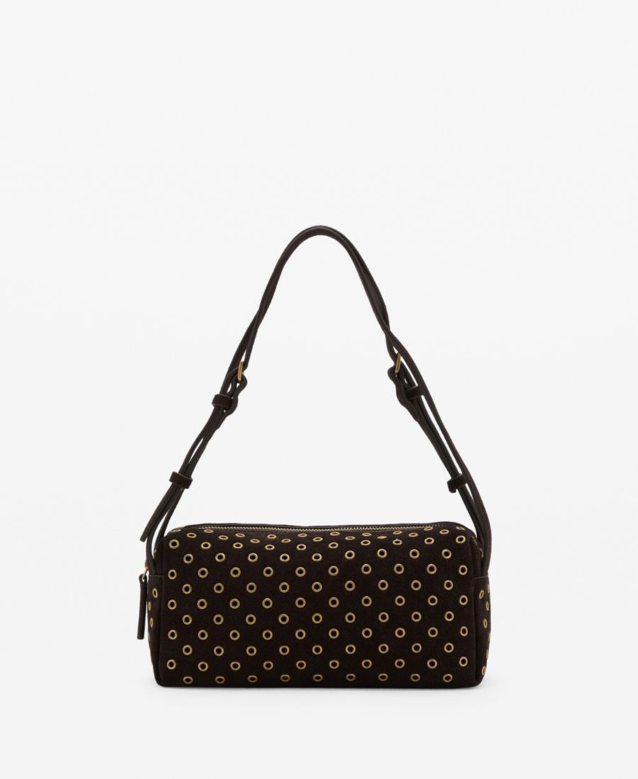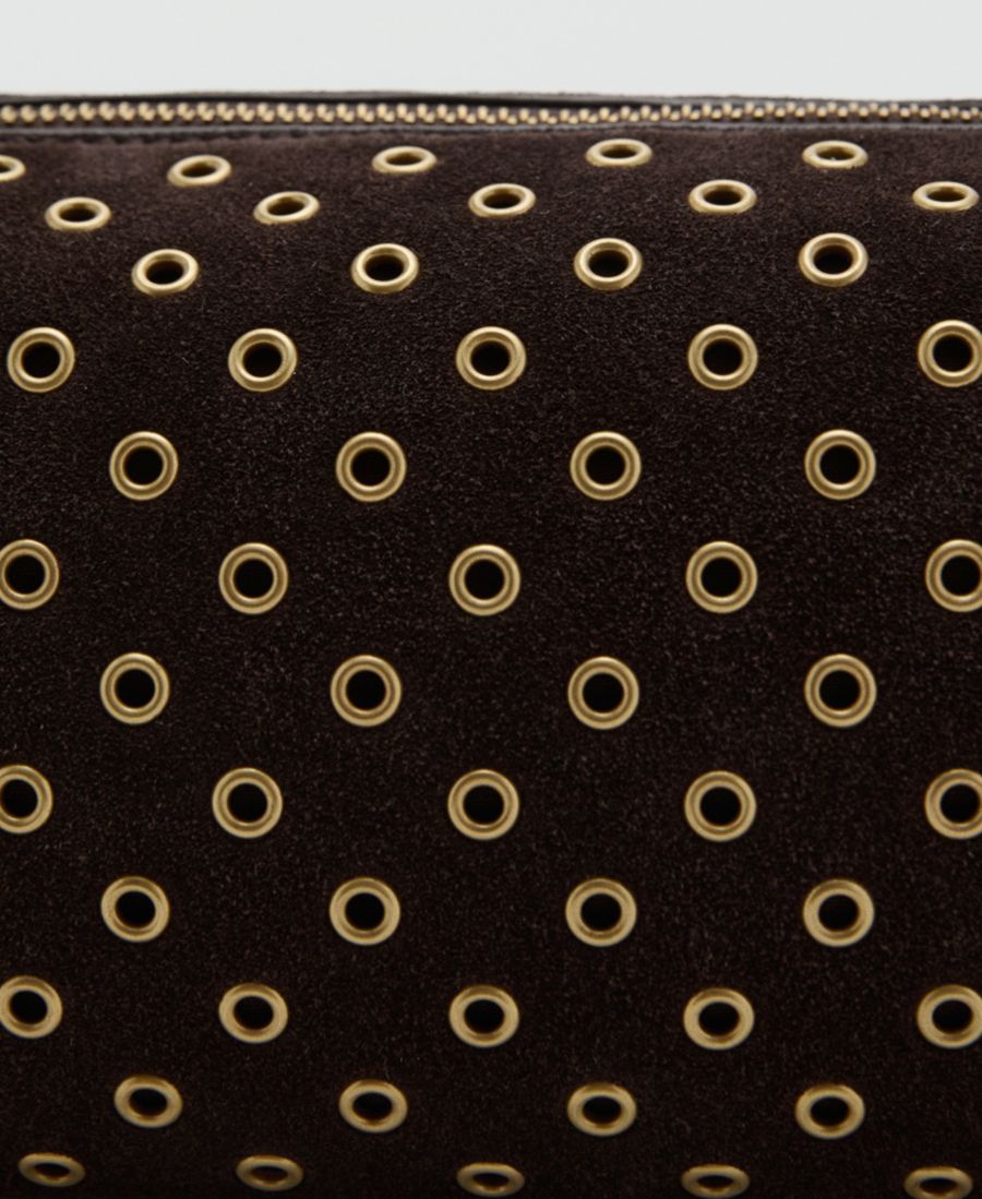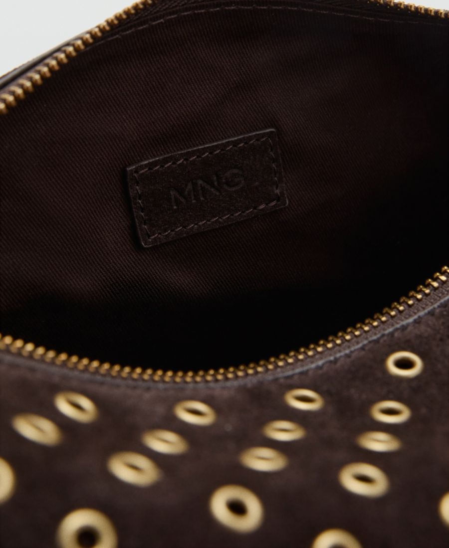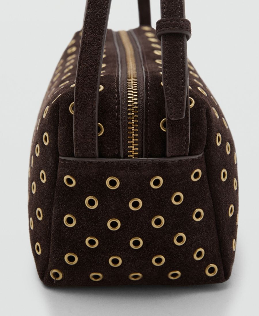Носите стильную замшевую сумку через плечо с люверсами от Mango, освобождая руки.