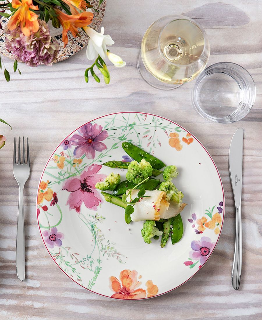 Продлите весну с помощью яркой салатницы Mariefleur. Яркие цвета украшают высококачественный белый фарфор с красной каймой и предназначены для повседневного использования. Сочетайте ее с посудой New Cottage от Villeroy & Boch.