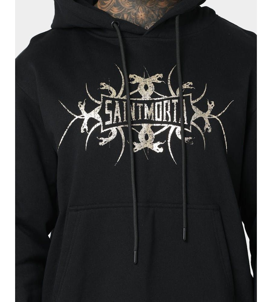 Худи Saint Morta Venom надежно защитит вашу спину от холода. Металлизированные принты на рукавах и груди, ребристые манжеты и нижний край, а также плотный хлопок - эта толстовка прослужит вам долго.