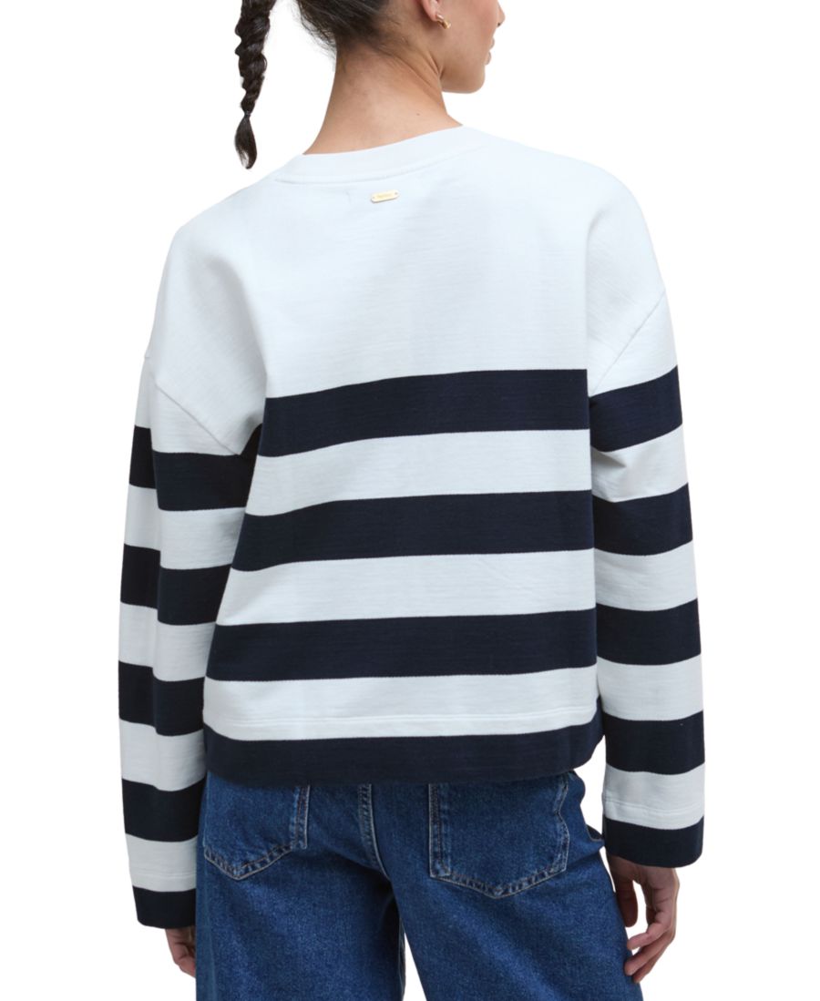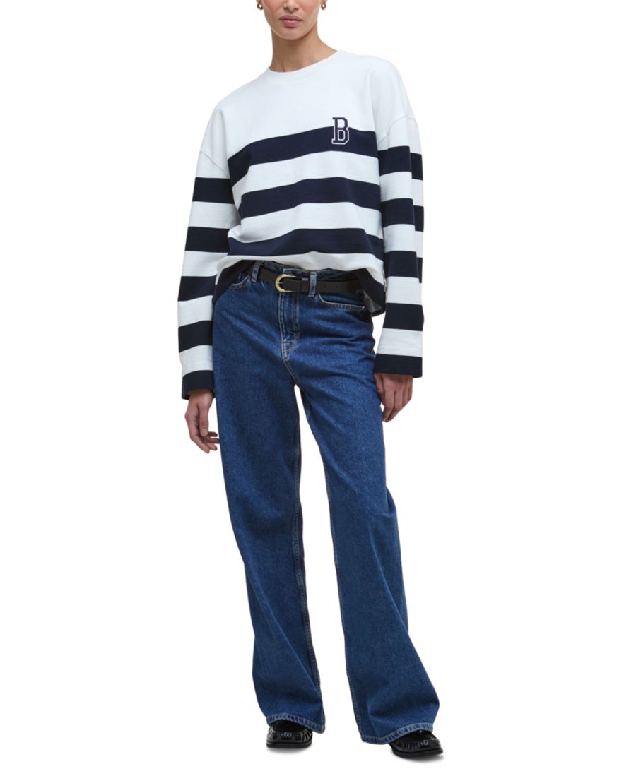 Уютная толстовка от Barbour в полоску с круглым вырезом и вышивкой на груди. Идеально сочетается с любимыми джинсами, эта толстовка - незаменимая вещь в вашем гардеробе.