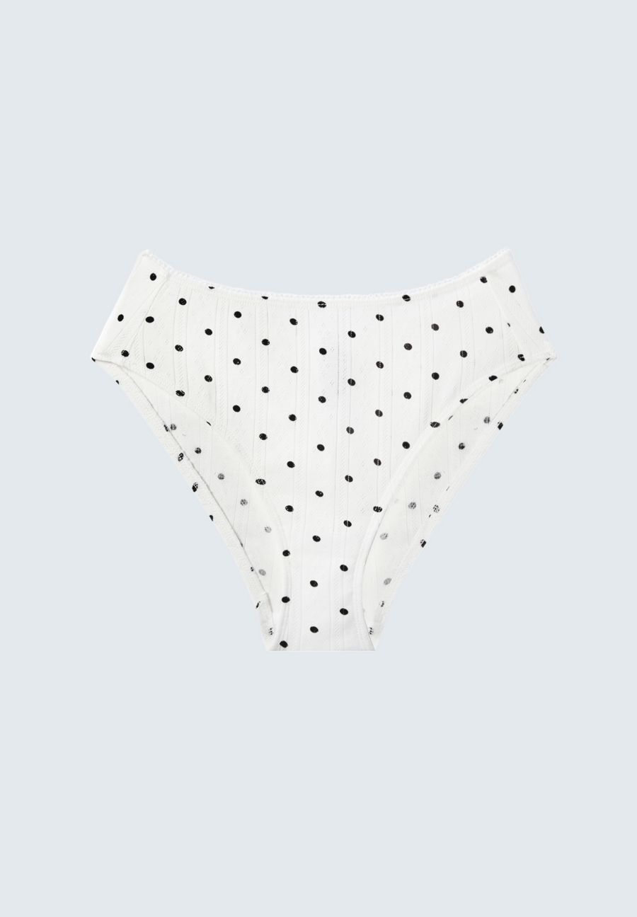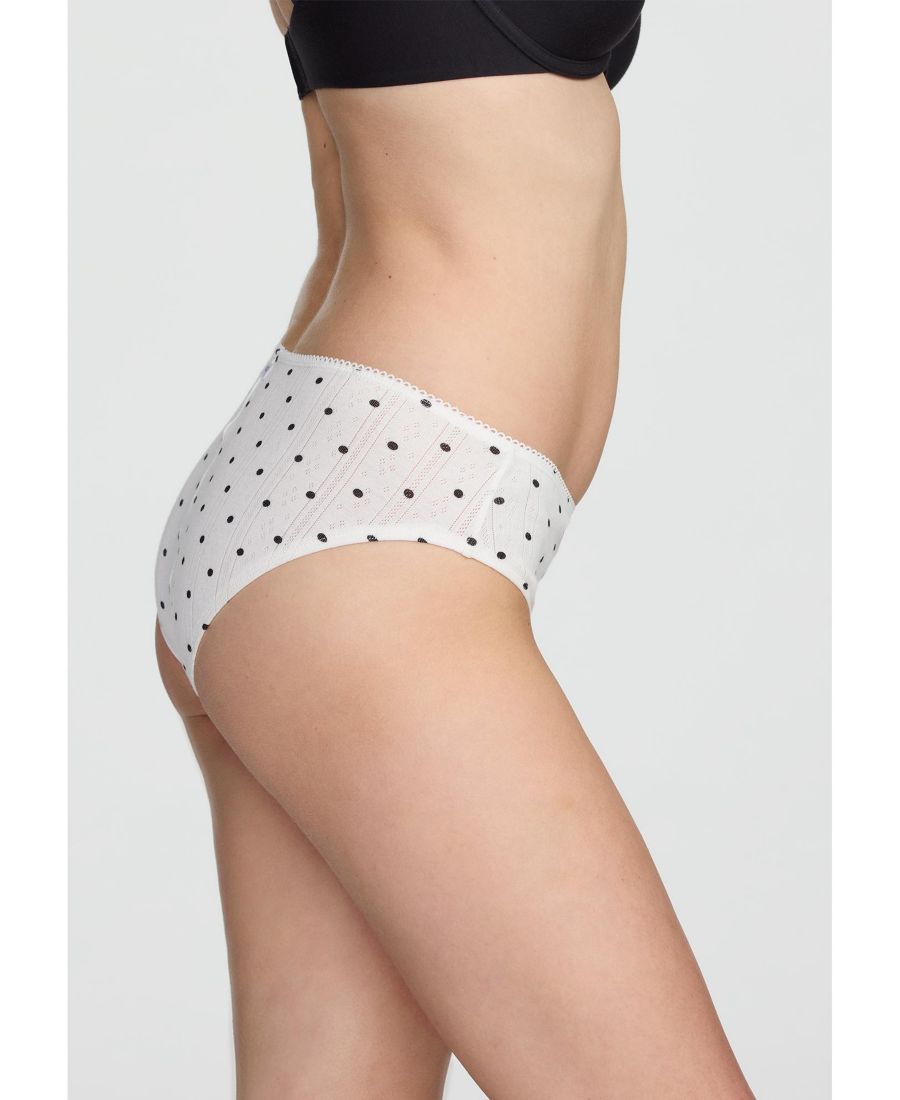 Трусики с полным покрытием, удобно сидящие на талии, сочетают в себе классические линии и комфорт в течение всего дня. Теперь доступны в нашей игривой ткани Pointelle в горошек. Обеспечивают классическое, более полное покрытие ягодиц. Изготовлены из ребристой ткани Pointelle с эластичной отделкой по краю. Влагоотводящая хлопковая ластовица для максимального комфорта и воздухопроницаемости. Эластичный пояс средней посадки для создания силуэта бедер и зоны бикини. 100% хлопок. Машинная стирка в деликатном режиме при низкой температуре. Не отбеливать. Сушить в сушилке при низкой температуре.