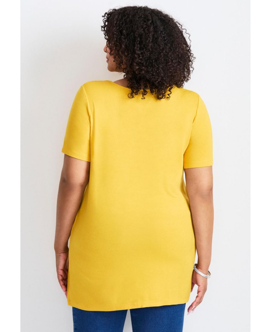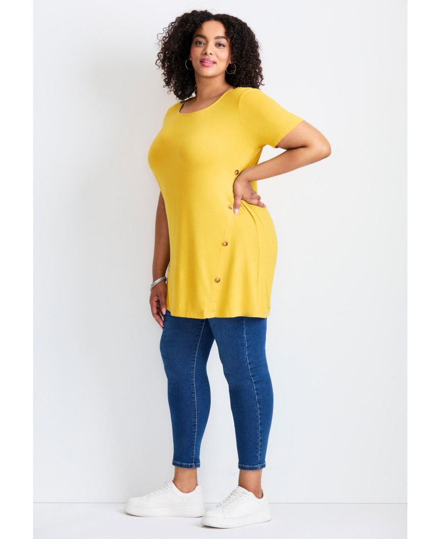 Идеальное сочетание комфорта и стиля, эта туника - незаменимый элемент гардероба для создания непринужденного образа. Благодаря свободному крою, мягкой эластичной ткани и эффектному вырезу-лодочке, она идеально подходит для ношения в течение всего дня. Декоративная застежка на пуговицах сбоку добавляет шика, а удлиненный крой предоставляет множество вариантов для создания различных образов. Сочетайте ее с леггинсами или джинсами для элегантного, но в то же время повседневного образа. ТКАНЬ: Мягкая, эластичная трикотажная ткань легкая и комфортная. Облегает фигуру, не прилипая к телу. КРОЙ: Свободный крой. Круглый вырез. Короткие рукава. УХОД: Машинная стирка. Основные характеристики: 95% вискоза, 5% эластан. Импортный товар. 33 дюйма. Большие размеры 14-36. Avenue