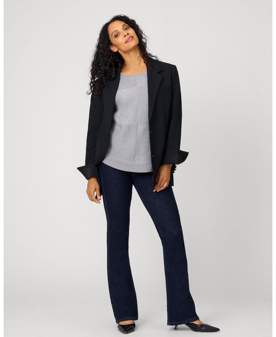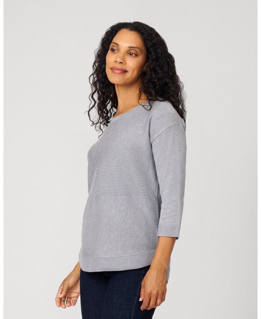 Этот свитер, являющийся неотъемлемой частью повседневного гардероба, отличается изысканными деталями: ребристая вязка в виде квадратов добавляет текстуру и объем. Мягкие цветовые блоки создают современный контраст, а классический круглый вырез и свободный крой обеспечивают комфорт. Вязание средней плотности делает его идеальным вариантом для переходной погоды.