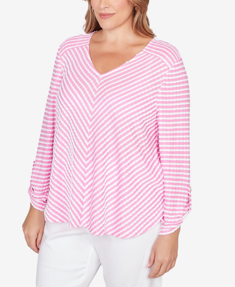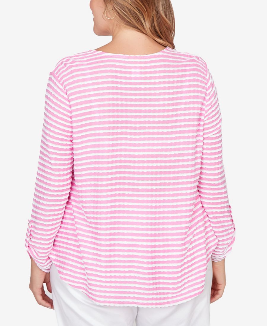Туника большого размера с фестончатым краем и полосками Ruby Rd, Hydrangea Multi