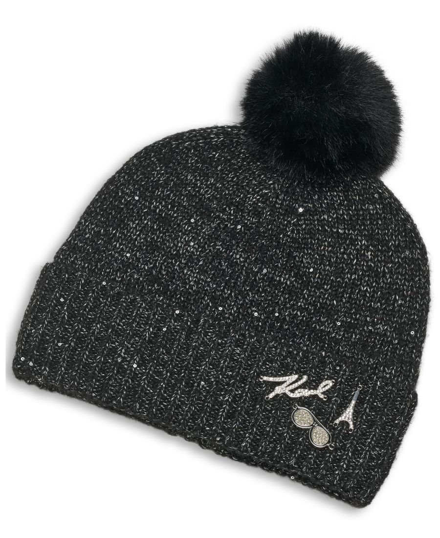 Женская шапка-бини с помпонами KARL LAGERFELD PARIS, Black