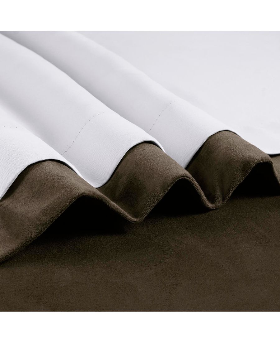 Цвет Ява - насыщенный кофейно-коричневый. Эти роскошные бархатные шторы имеют подкладку из термоткани кремового цвета.