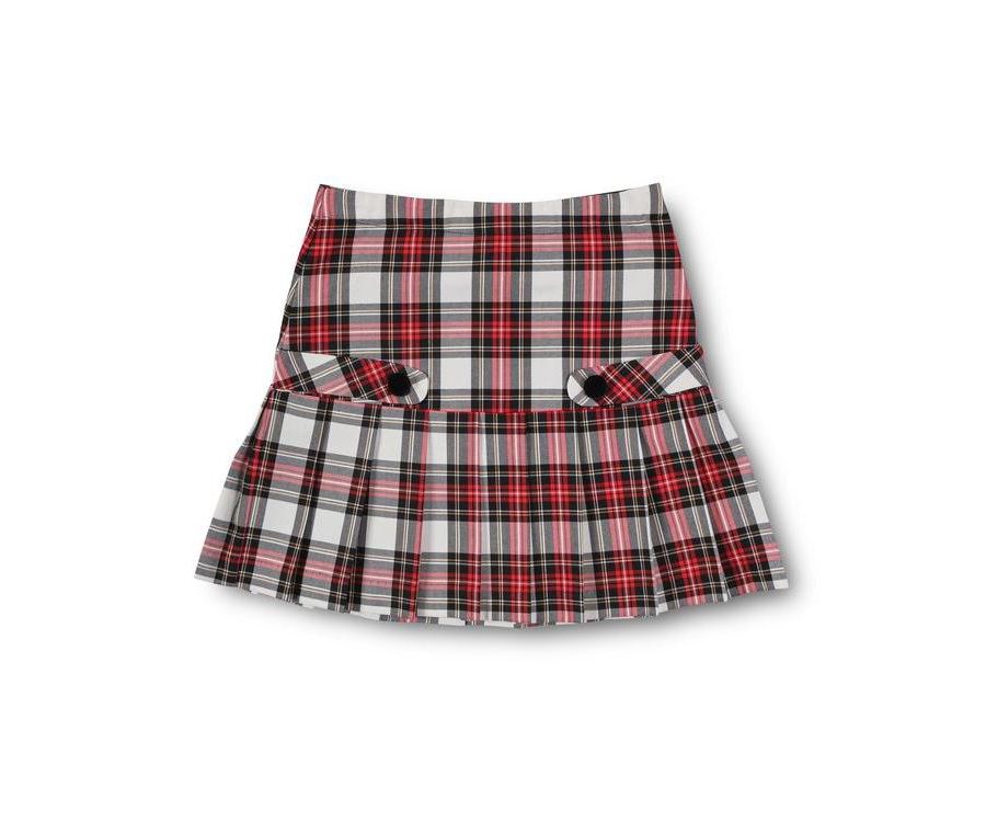 Эта плиссированная клетчатая юбка от Florence Eiseman, выполненная в классических белых, красных и черных тонах, украшена элегантными пуговицами по бокам, обтянутыми черным бархатом. Юбка имеет регулируемую эластичную резинку на талии для максимального комфорта, длина чуть выше колена, что идеально сочетает в себе шик и удобство машинной стирки.