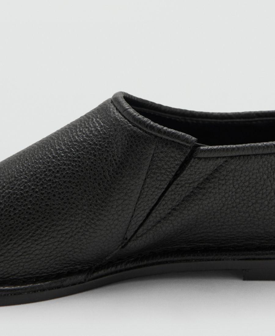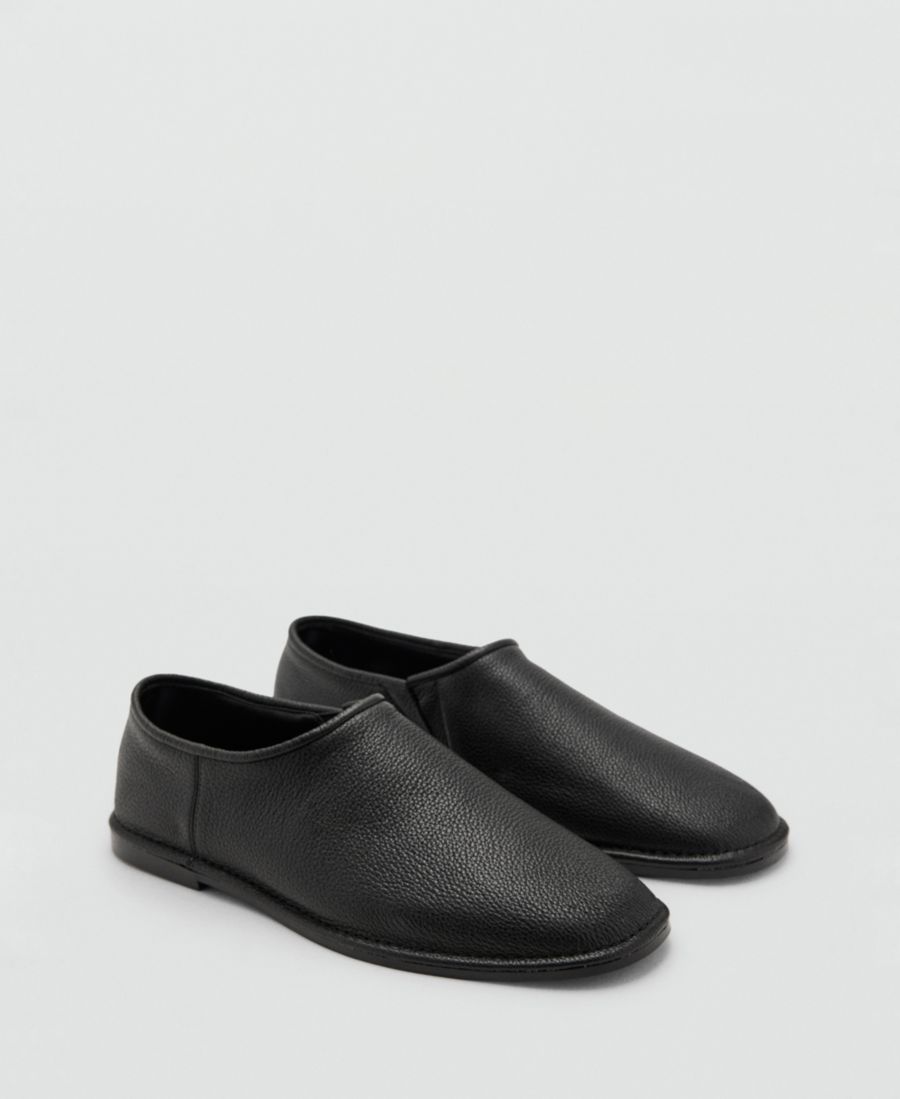 Повседневный комфорт - отличительная черта кожаных туфель-балеток от Mango. Изготовленные из натуральной коровьей кожи, эти туфли без шнурков имеют плоскую подошву и закругленный носок.