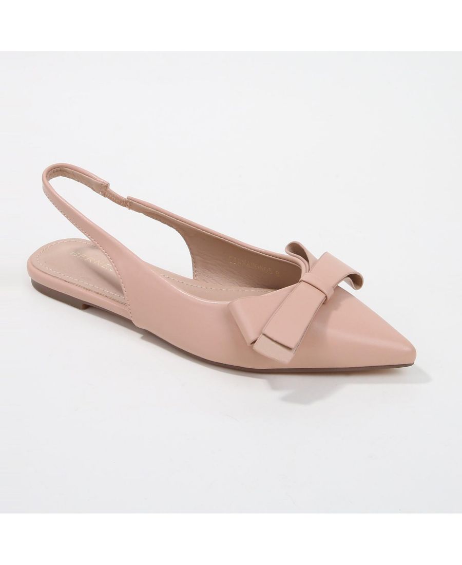 Коричневые балетки с открытой пяткой, изящным заостренным носком и асимметричным бантом сочетают в себе женственную элегантность и комфорт на весь день.