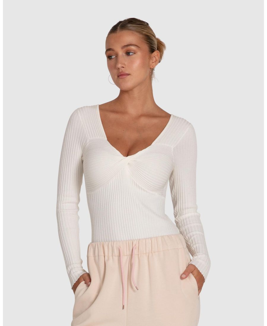 Мягкая ребристая отделка придает нежную текстуру боди Think Twice с длинными рукавами и женственным перекрученным передом, идеально подходящему для повседневного многослойного образа.