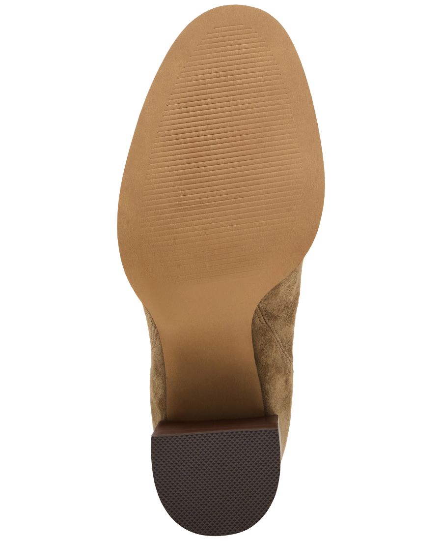 Тип каблука: блочный каблук Высота каблука (дюймы): 3,5 Обхват голенища (дюймы): 9, Высота голенища (дюймы): 5,5 Ширина голенища: стандартная Форма носка: миндалевидный Застежка: молния Верх: замша; Подкладка: без подкладки; Подошва: искусственный материал Импортные