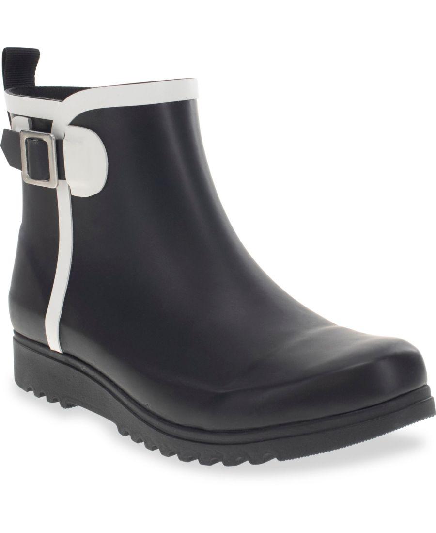 Оставайтесь стильными и сухими в этих черно-белых резиновых сапогах до щиколотки. Водонепроницаемая конструкция сохранит ваши ноги сухими в дождь, снег и лужи. Дышащая подкладка из полиэстера и хлопка обеспечит комфорт в течение всего дня, а регулируемая боковая пряжка позволит настроить посадку для дополнительного комфорта и поддержки.