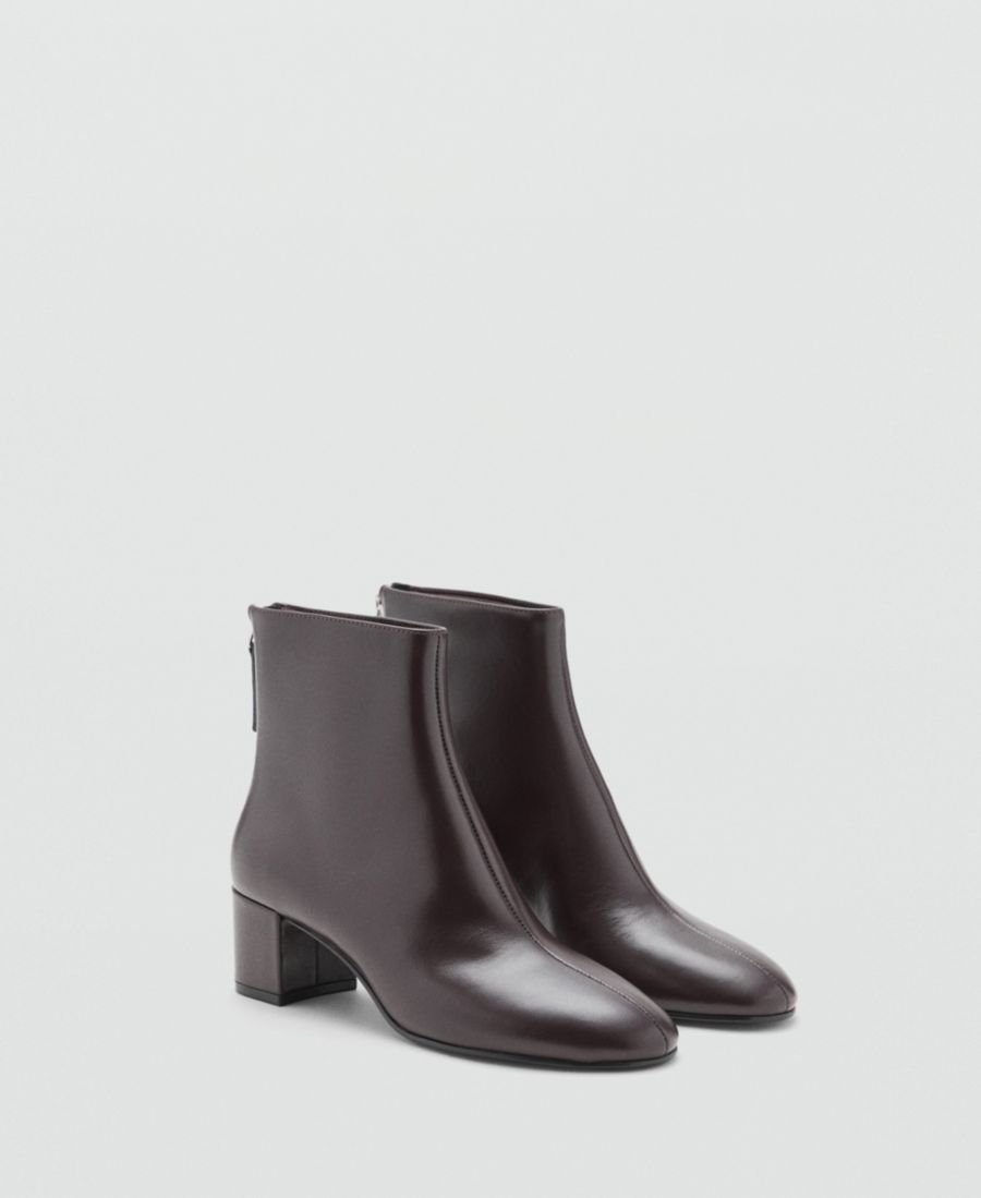 Женские кожаные ботильоны на блочном каблуке MANGO, Chocolate