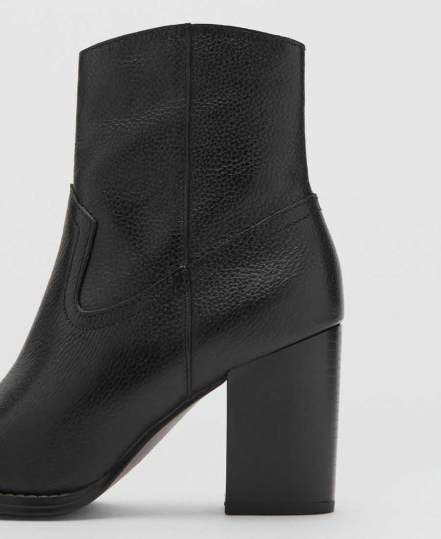Женские кожаные ботильоны с острым носком MANGO, Black