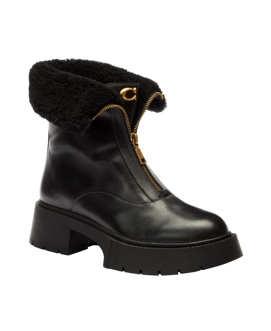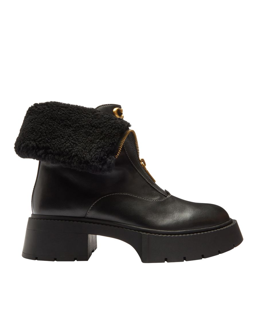 Эти ботильоны COACH, изготовленные из замши или кожи и овчины, имеют платформу и застежку-молнию для надежной фиксации. Круглый носок придает им стильный вид.