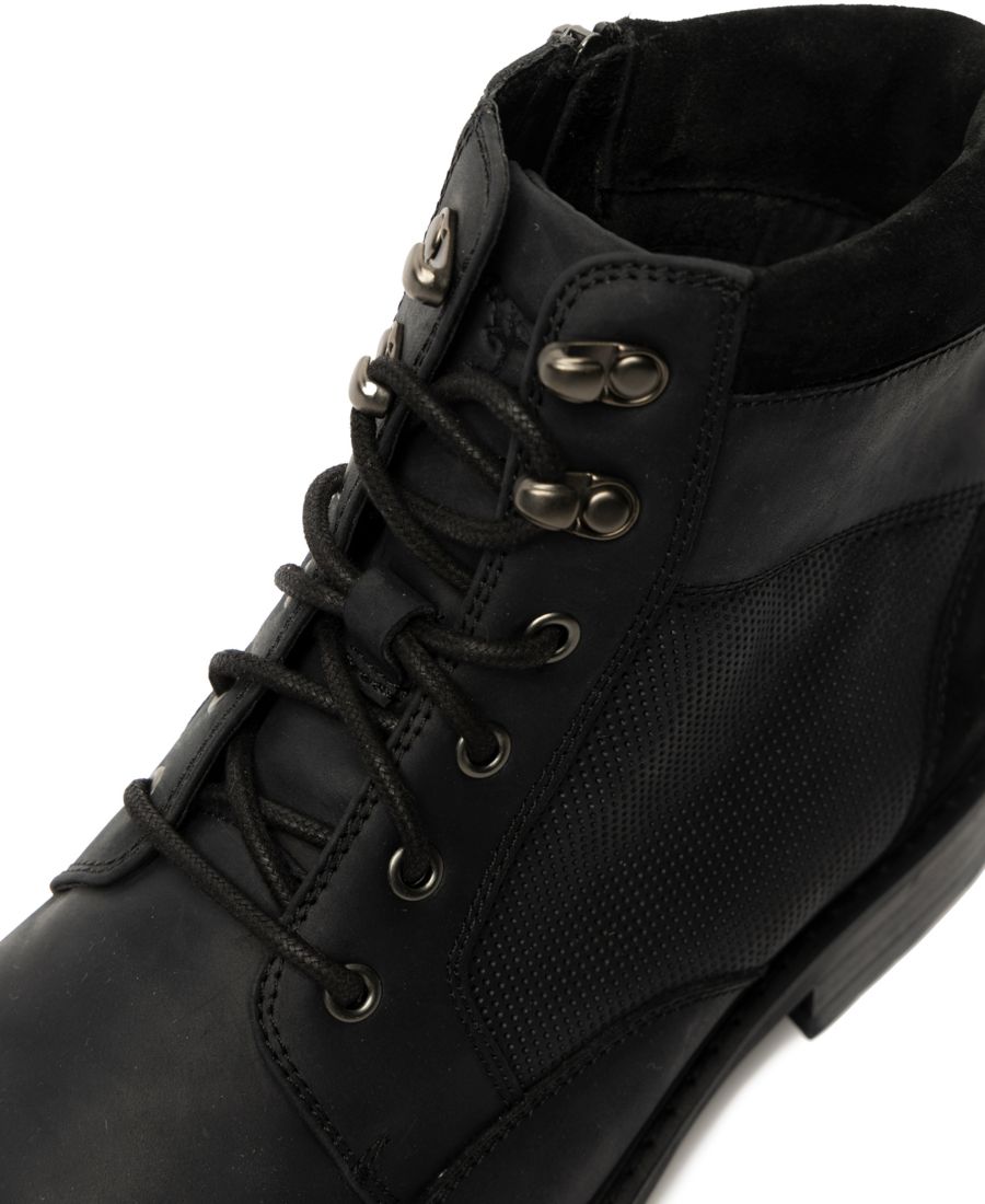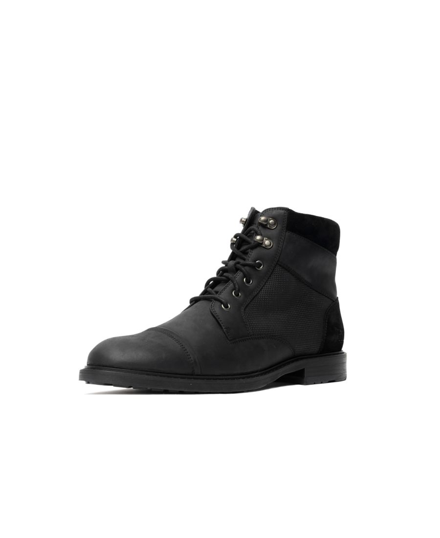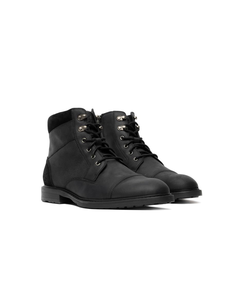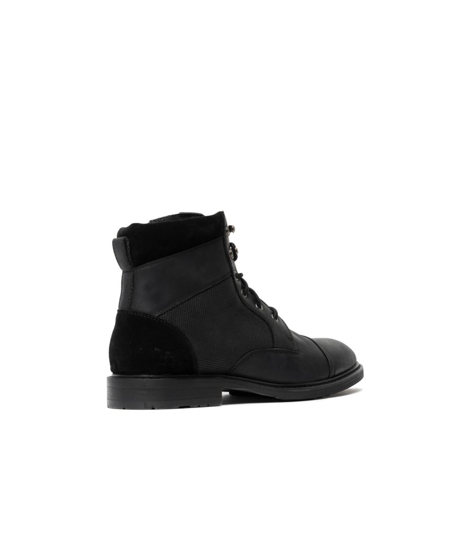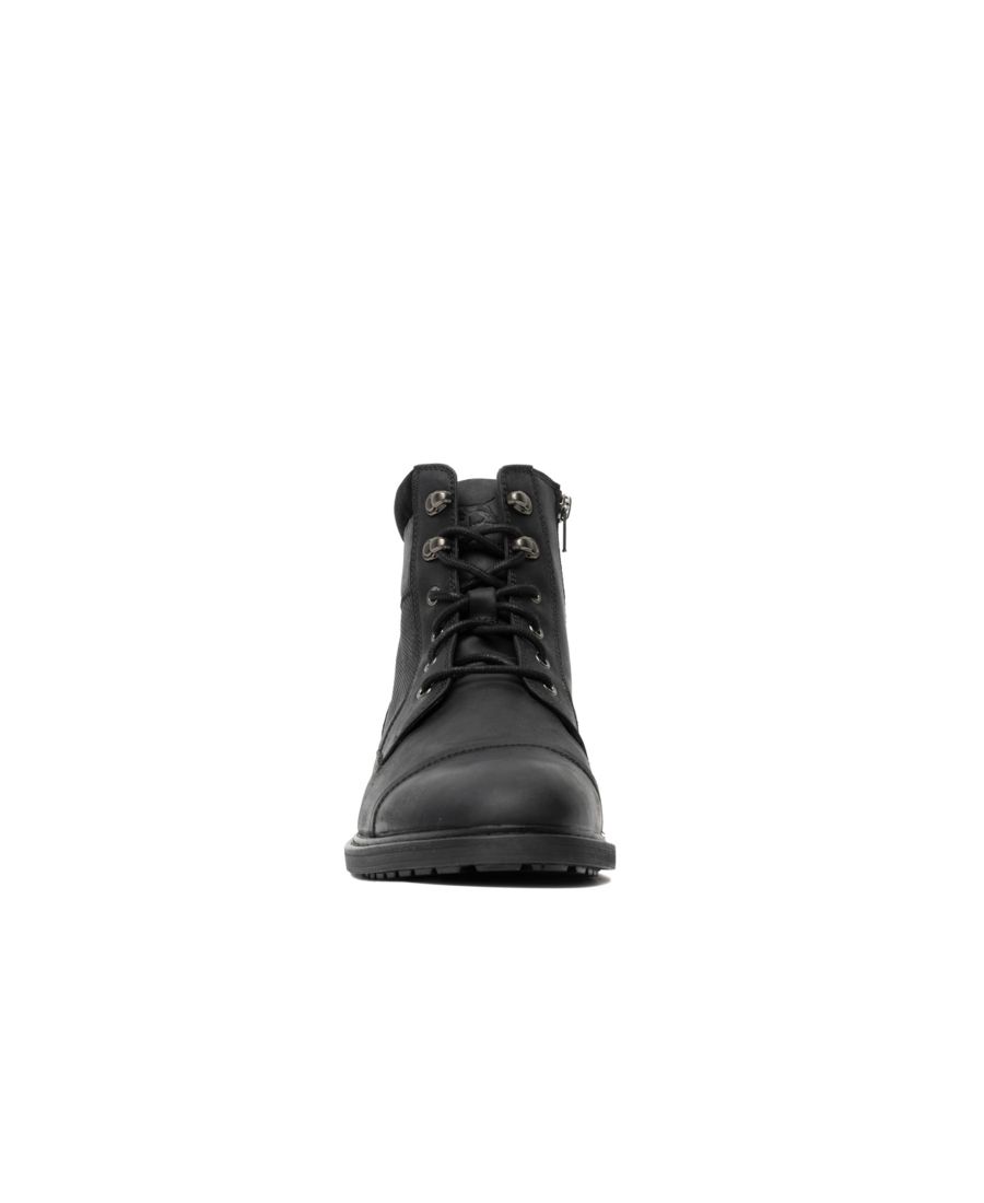Ботинки Durham Military Boot - это универсальная модель, сочетающая в себе элементы классического и повседневного стиля. Верх выполнен из высококачественной американской кожи с характерным рисунком, дополнен замшевыми манжетами, металлическими элементами с эффектом состаривания и внутренней молнией YKK для удобства надевания. Верхняя часть ботинок имеет перфорацию на поясной панели, подкладку из кожи и ткани, а съемная формованная полиуретановая стелька с кожаным покрытием делает их еще более комфортными. Рифленая подошва выполнена из двухцветной формованной резины с отдельной пяткой и резиновой верхней частью.