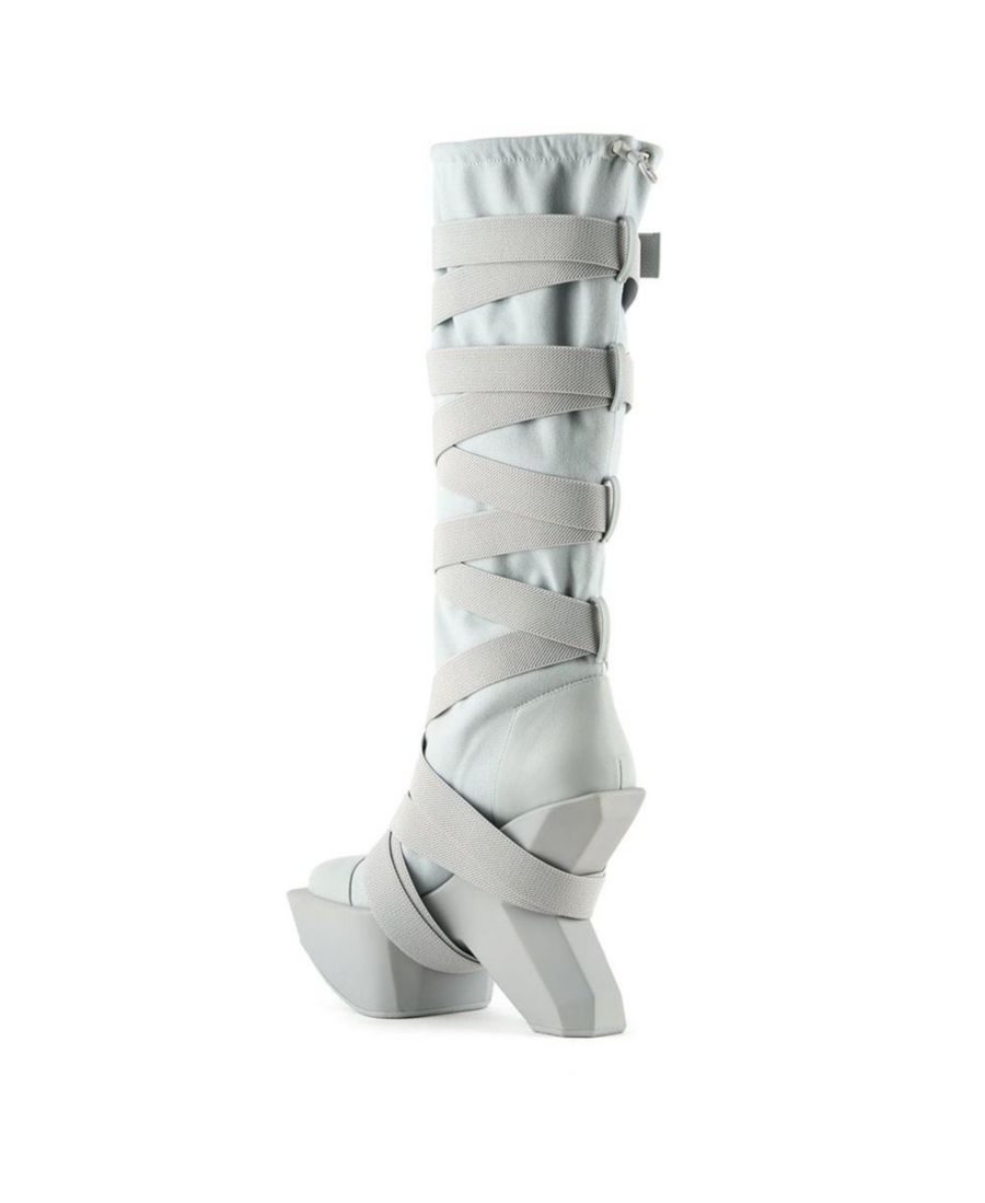 Ботинки Boulder Boot - это высокие сапоги до колена на эффектной танкетке, вдохновленные суровой привлекательностью скалодромов. Геометрическая, угловатая подошва создает футуристический силуэт, а сочетание прочного текстиля и изящной фурнитуры на голенище обеспечивает впечатляющий текстурный контраст. Эластичные ремешки обхватывают голень и лодыжку, а также саму танкетку, добавляя смелые детали и обеспечивая регулируемую посадку. Созданные для модниц, любящих экспериментировать со стилем, ботинки Boulder Boot идеально подходят для того, чтобы произвести сильное впечатление на любом мероприятии.