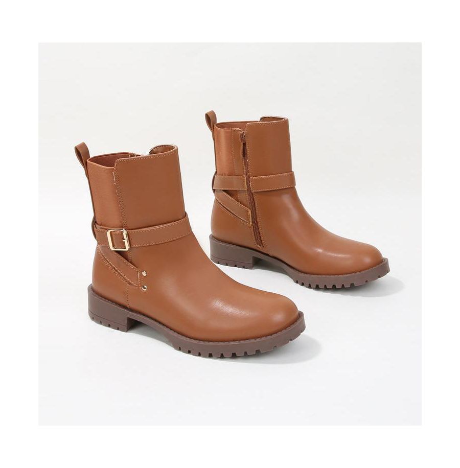 Ботильоны в мотоциклетном стиле с металлическими вставками