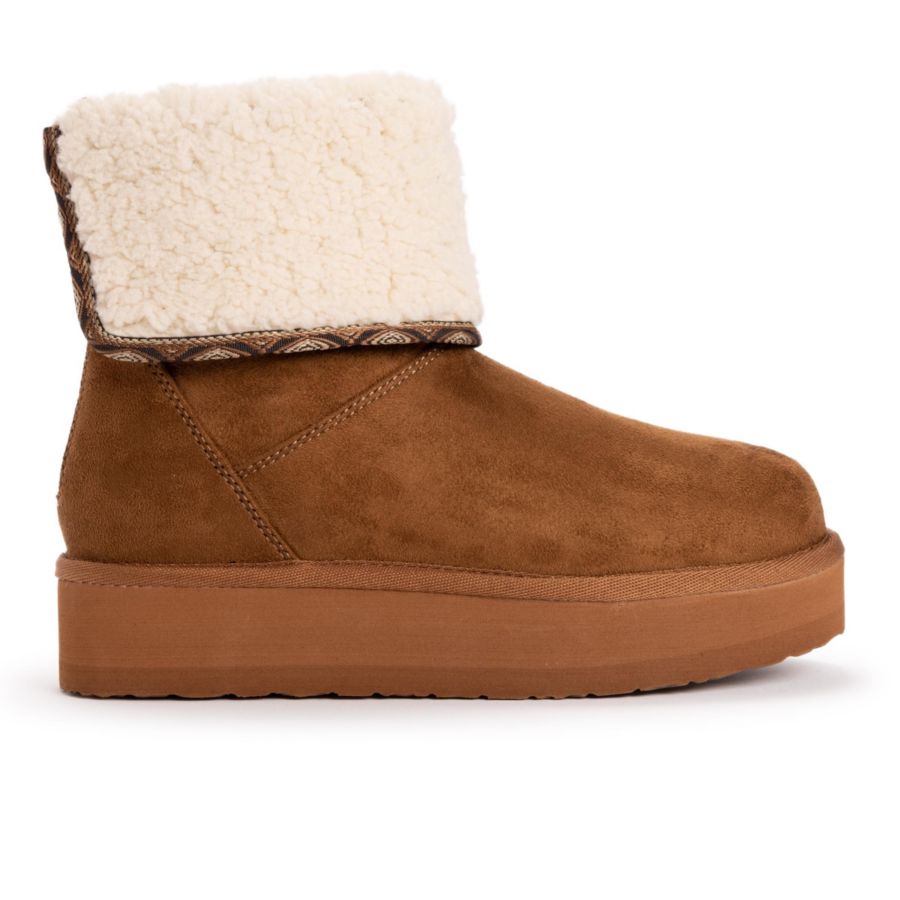 Ботинки Muk Luks Amelia согреют ваши ноги благодаря подкладке из искусственной овчины и забавному узору на голенище из овчины. Застежка-молния сзади позволяет легко надеть эти ботинки.