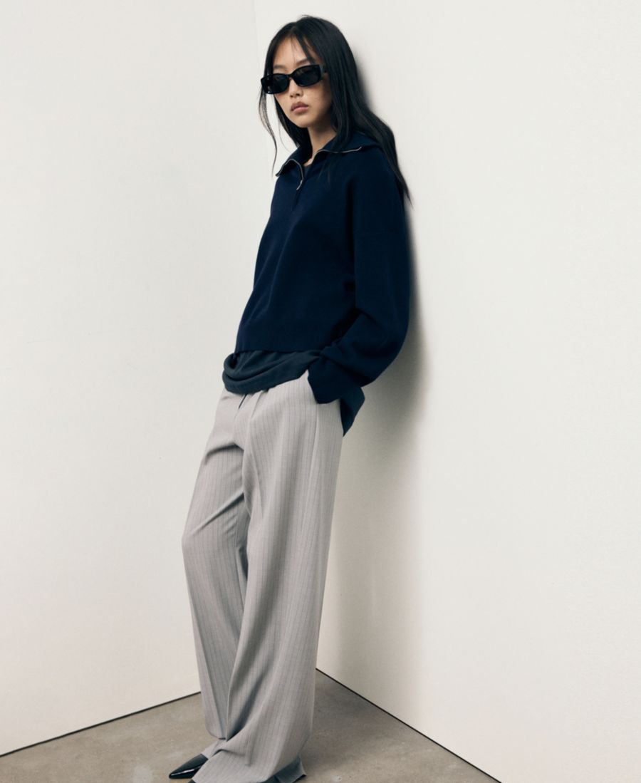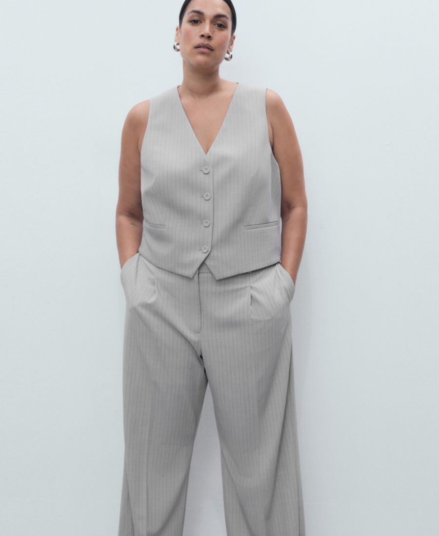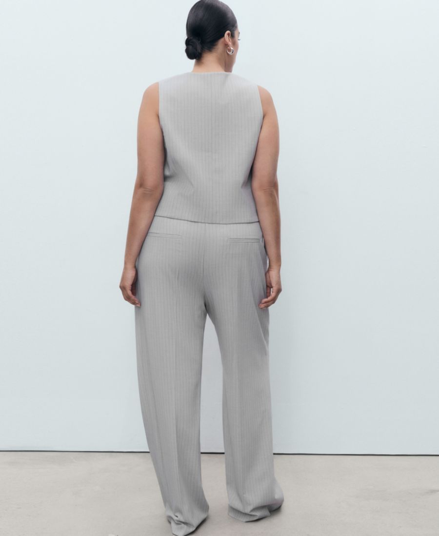 Обновите свой гардероб, добавив в него эти брюки в тонкую полоску от Mango. Изготовленные из тканого материала, эти длинные прямые брюки в тонкую полоску с низкой посадкой имеют петли для ремня, два боковых кармана, складку спереди, потайную застежку на пуговицу, крючок и молнию, а также внутреннюю подкладку.