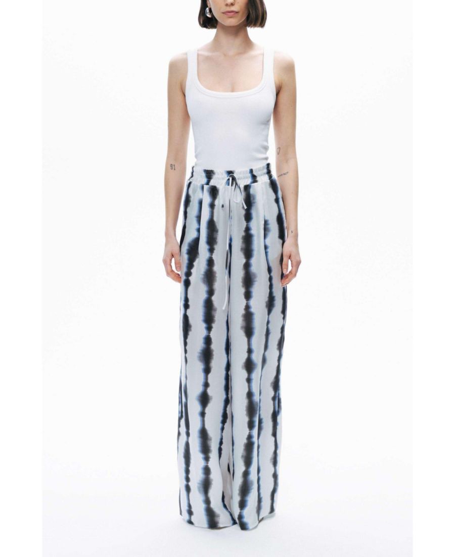Ощутите непринужденный стиль и комфорт с этими брюками с принтом тай-дай, созданными для свободной посадки, которая не теряет своего размера. Эластичный пояс с высокой посадкой и шнурком спереди обеспечивает регулируемую и надежную посадку, которая будет двигаться вместе с вами в течение всего дня.