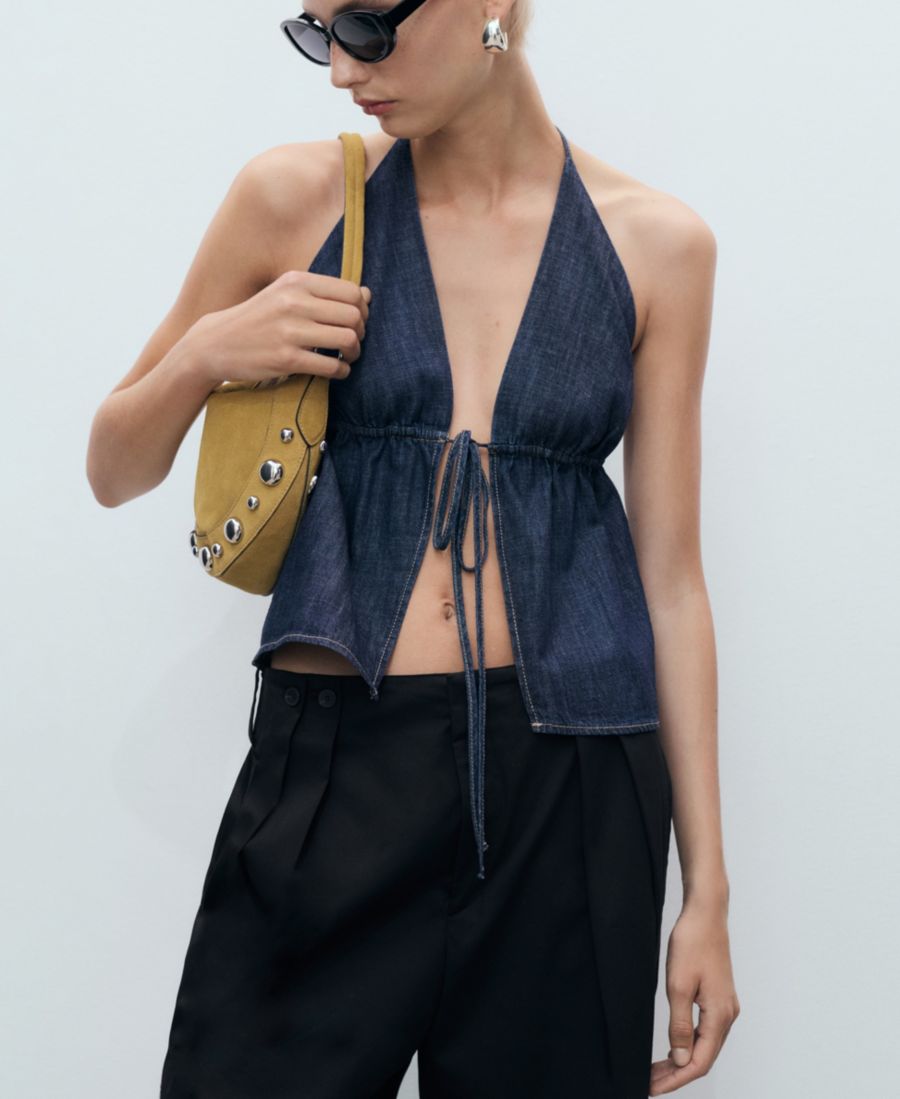 Женские хлопковые брюки на пуговицах MANGO, Black 7 373₽