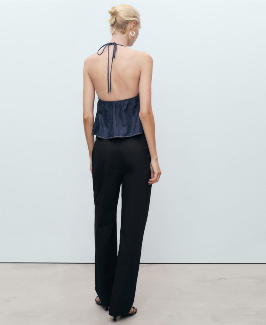 Женские хлопковые брюки на пуговицах MANGO, Black