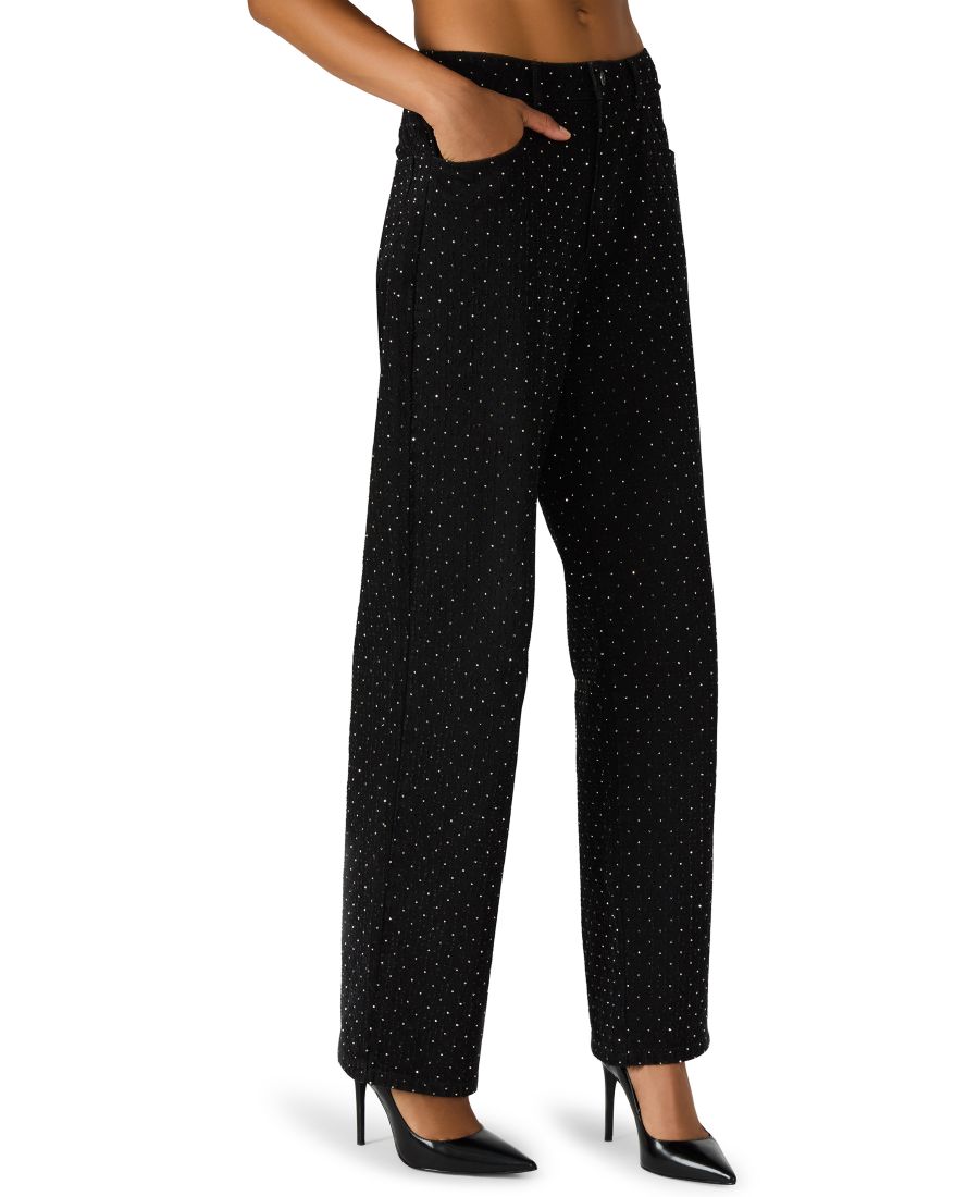 Джинсы Avaline от Steve Madden из кристально чистой твидовой ткани придают этим прямым брюкам блеск. Модель длиной до щиколотки, с добавлением эластичного материала, украшена стразами, имеет пять карманов и застежку на пуговицу и молнию.