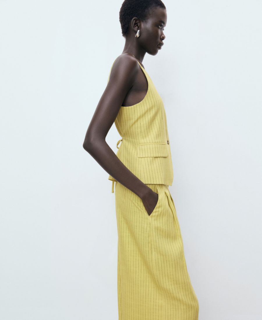 Женские полосатые прямые брюки от костюма MANGO, Lime 7 373₽