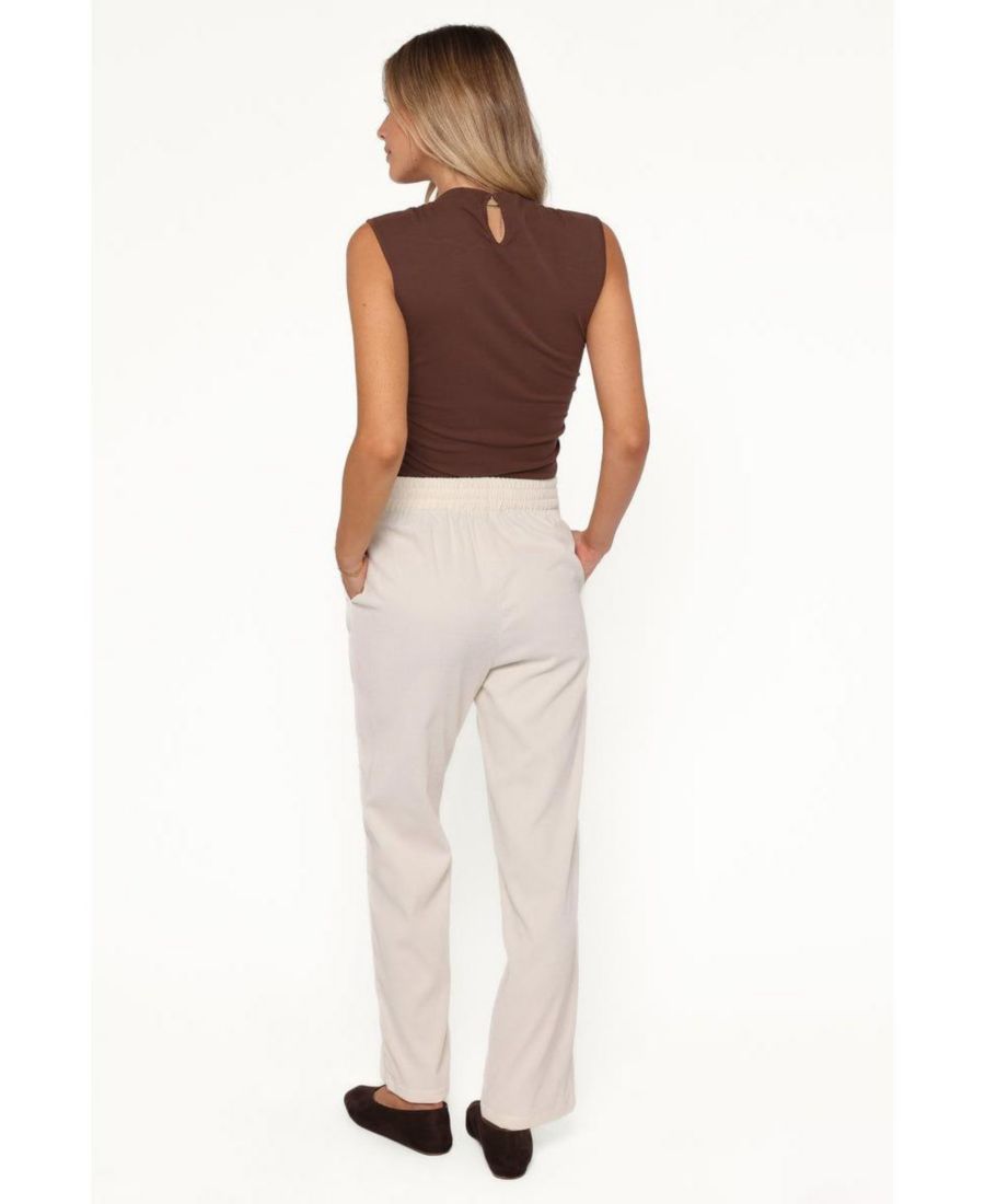 Эти брюки с высокой талией сшиты из модного вельвета, который излучает уют и шик. Застежка на молнию и пуговицу обеспечивает надежную фиксацию, а эластичный пояс сзади гарантирует необходимый комфорт.