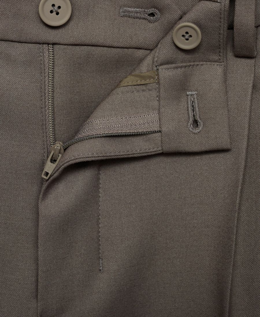 Застежка спереди на двубортные пуговицы и молнию; петли для ремня