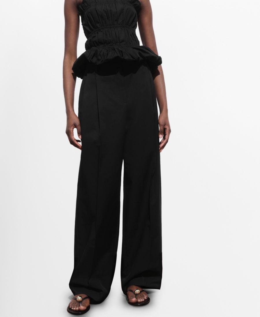 Женские прямые брюки со складками MANGO, Black